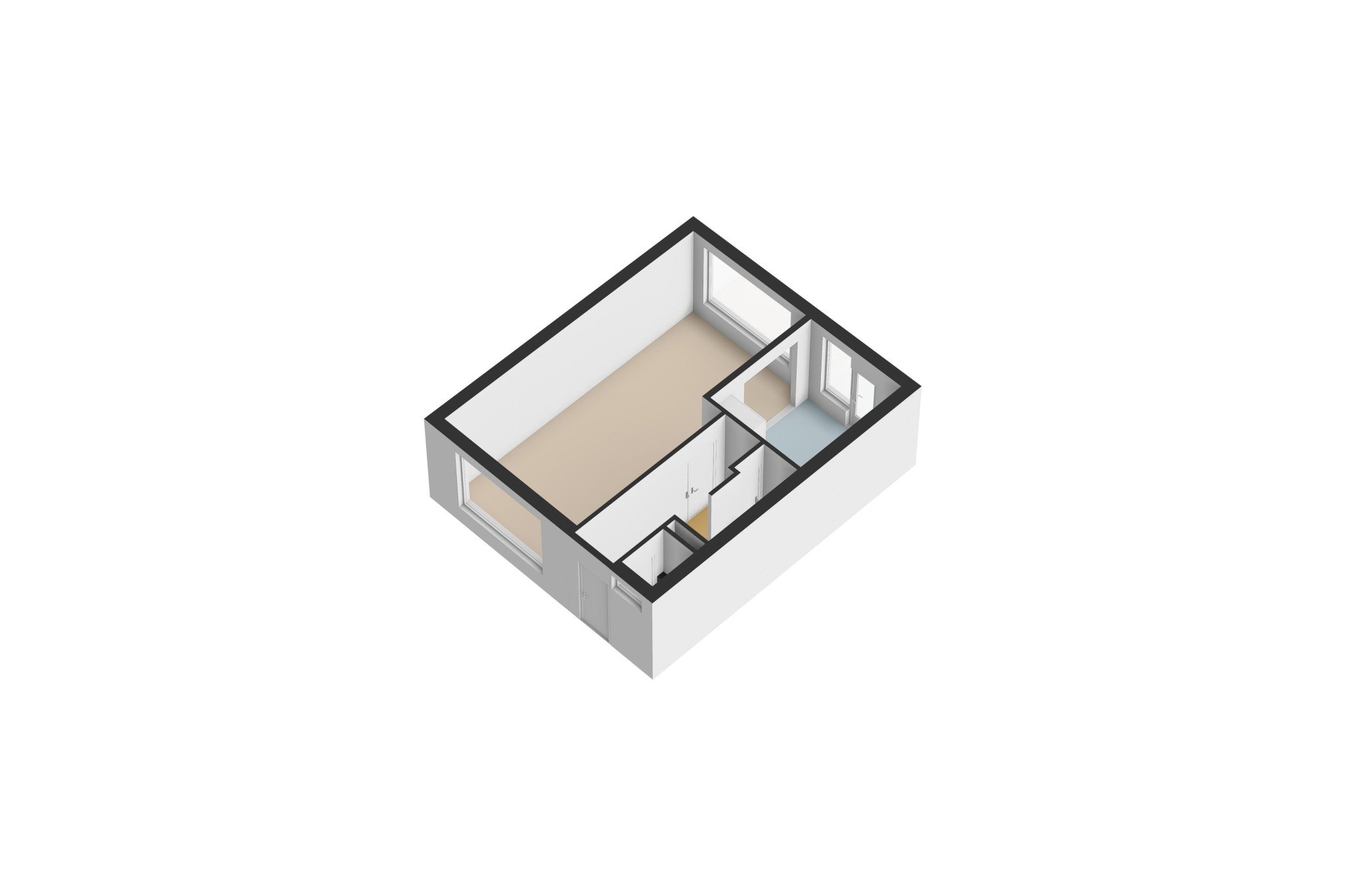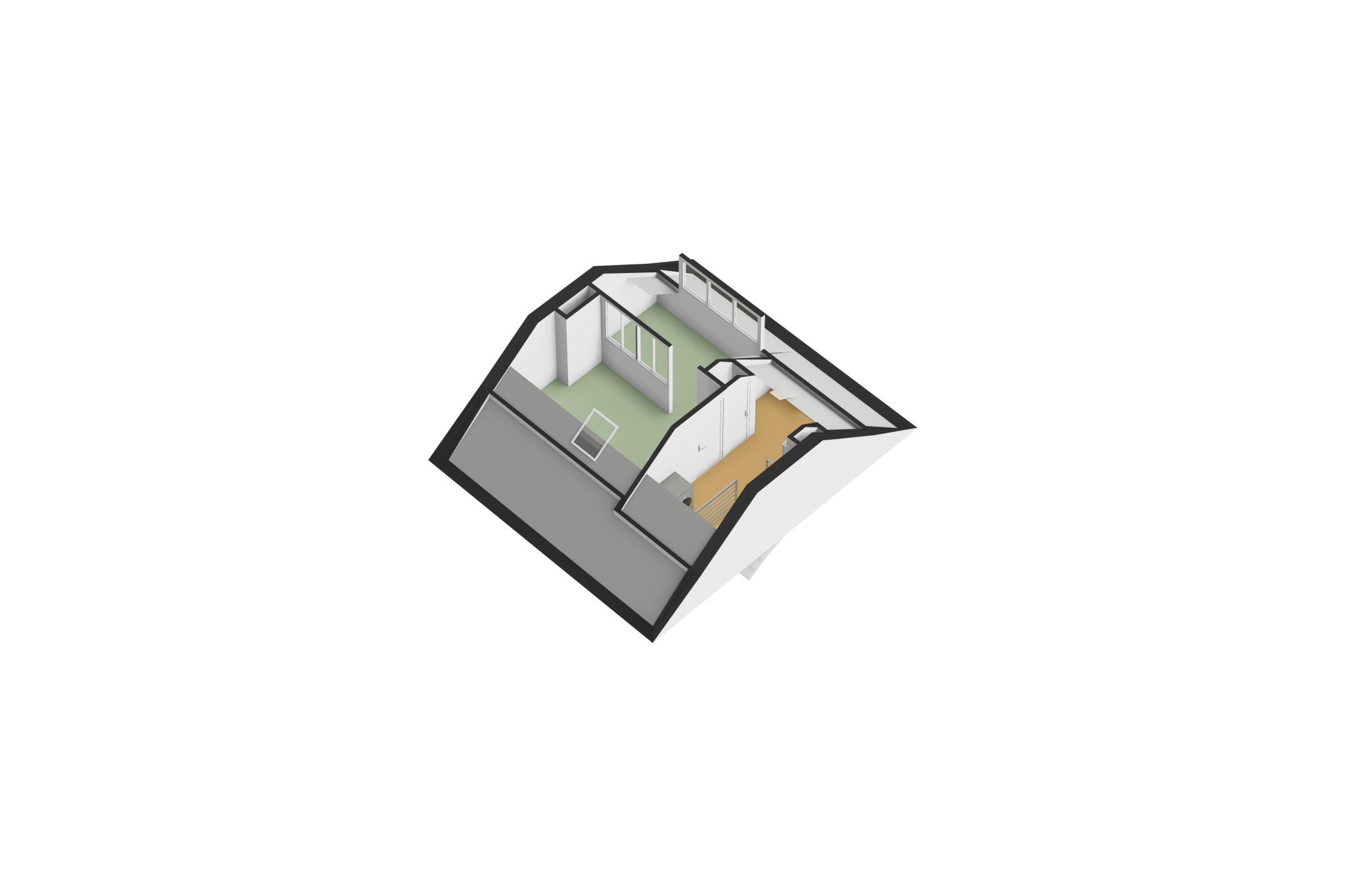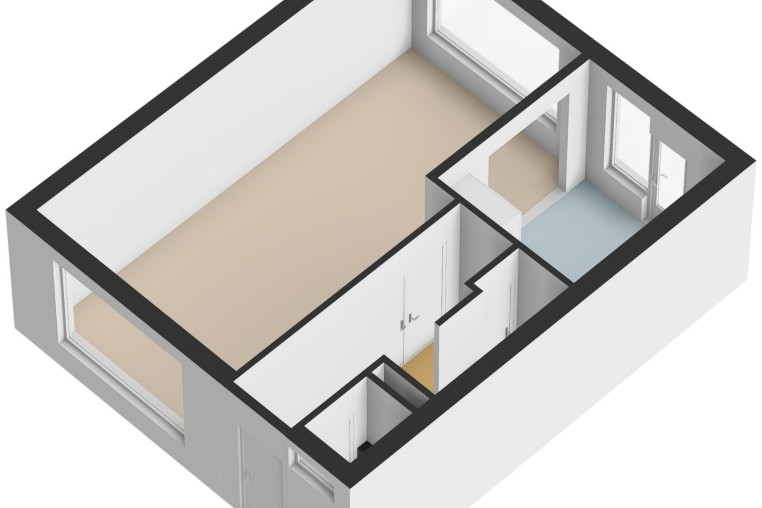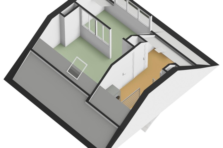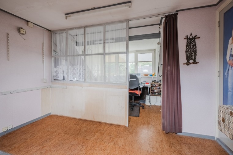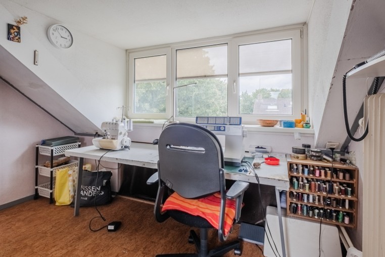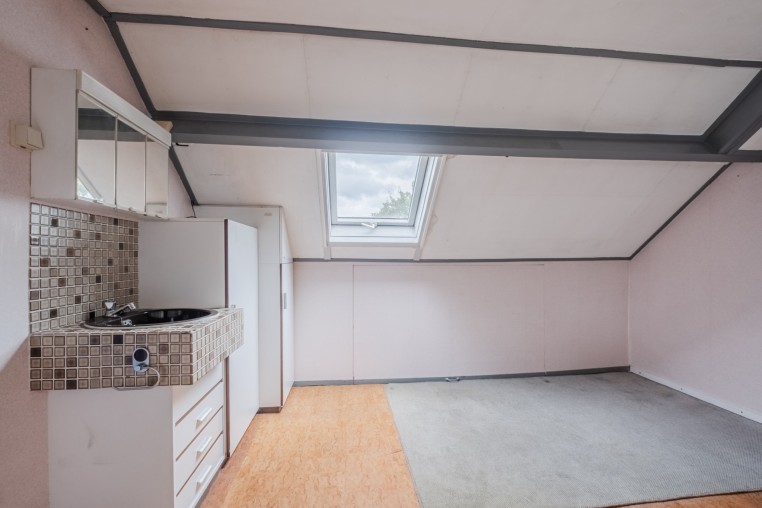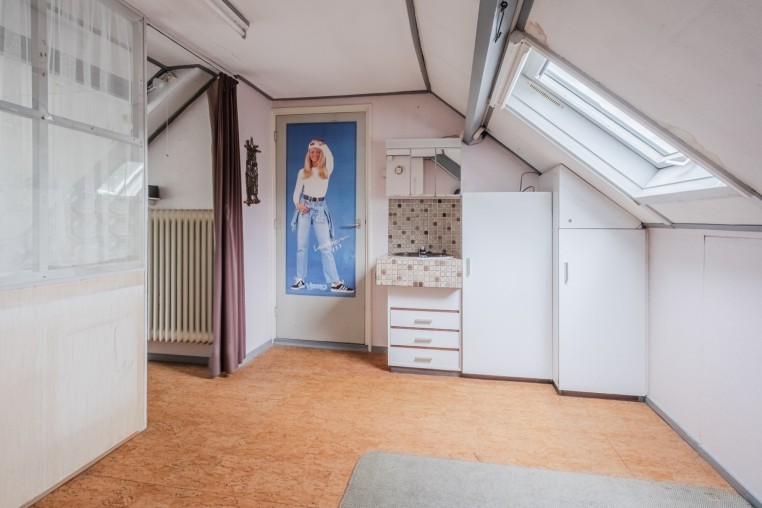 Ruime 4e slaapkamer met afgescheiden thuiswerk/hobby gedeelte, ± 15 m², met zeil, vaste wastafel, bergruimte, dakraam en dakkapel met kunststof kozijn, HR++ glas en elektrische screen.