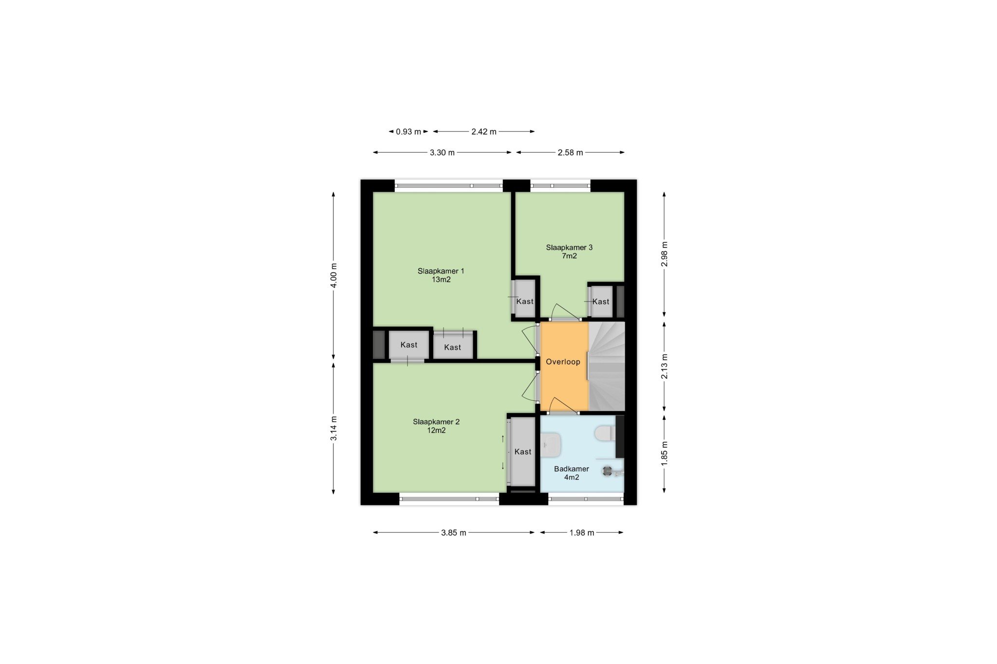 * De woning beschikt over 4 ruime slaapkamers.