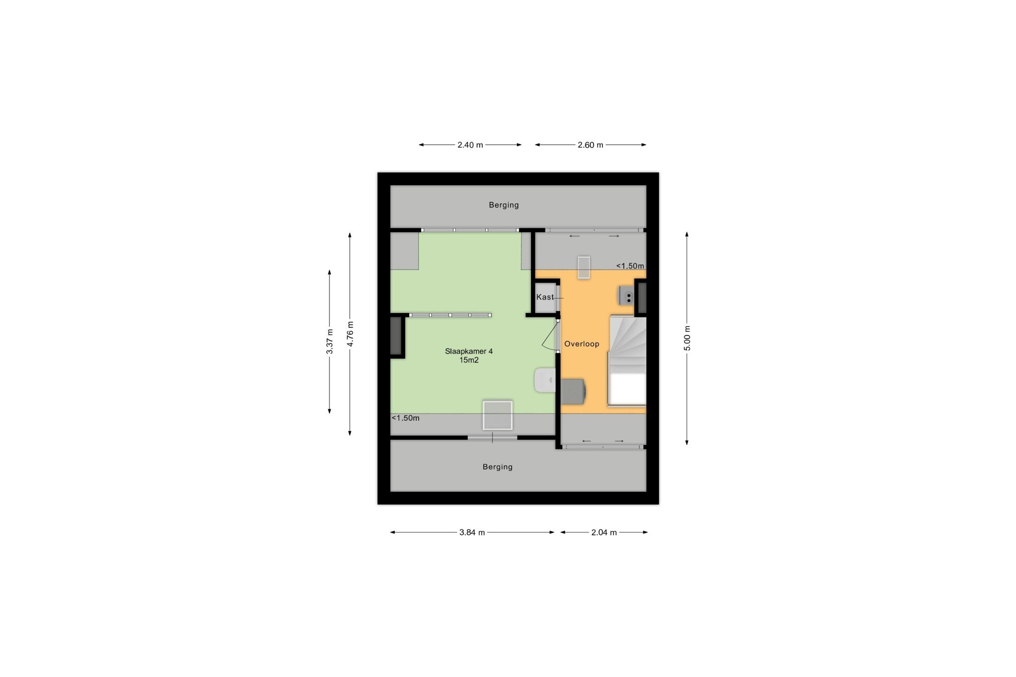 Bereikbaar middels vaste trap.