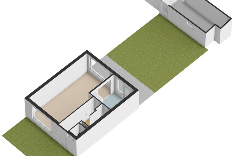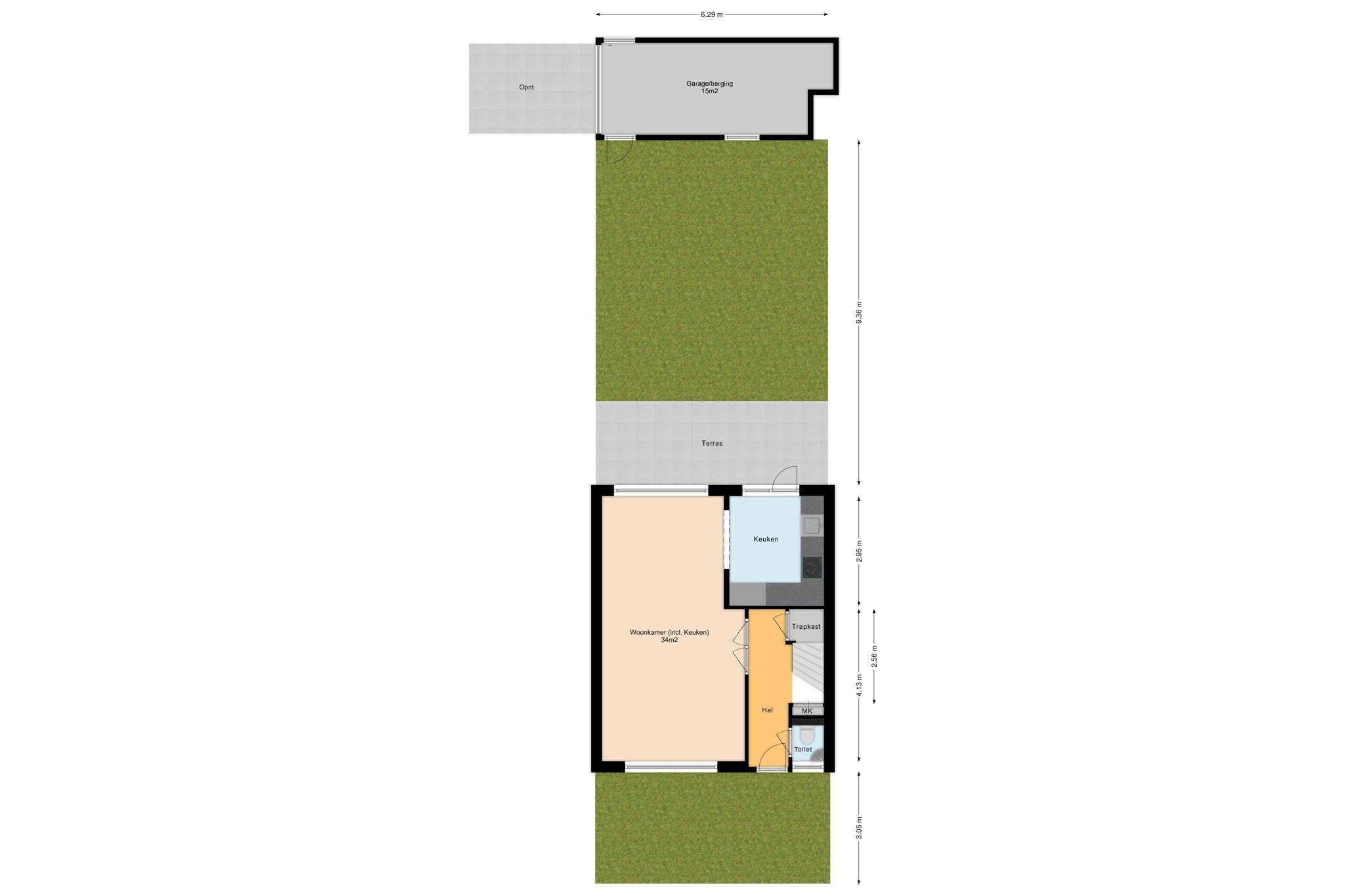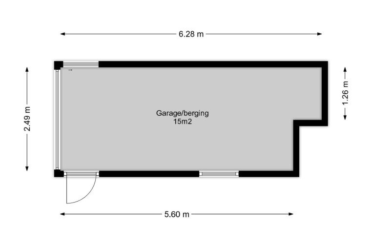 In de achtertuin bevindt zich tevens de ruime garage/berging met kanteldeur, ± 15 m², en achterom. Aan de garage grenst een ruime oprit van ± 8 m.