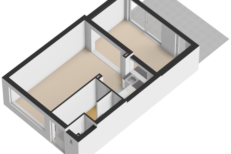 Ruime, aan de achterzijde uitgebouwde living ± 44 m², met laminaatvloer en via een schuifpui en separate deur toegang tot de fijne overkapping met verlichting. Optimaal genieten van alle jaargetijden.