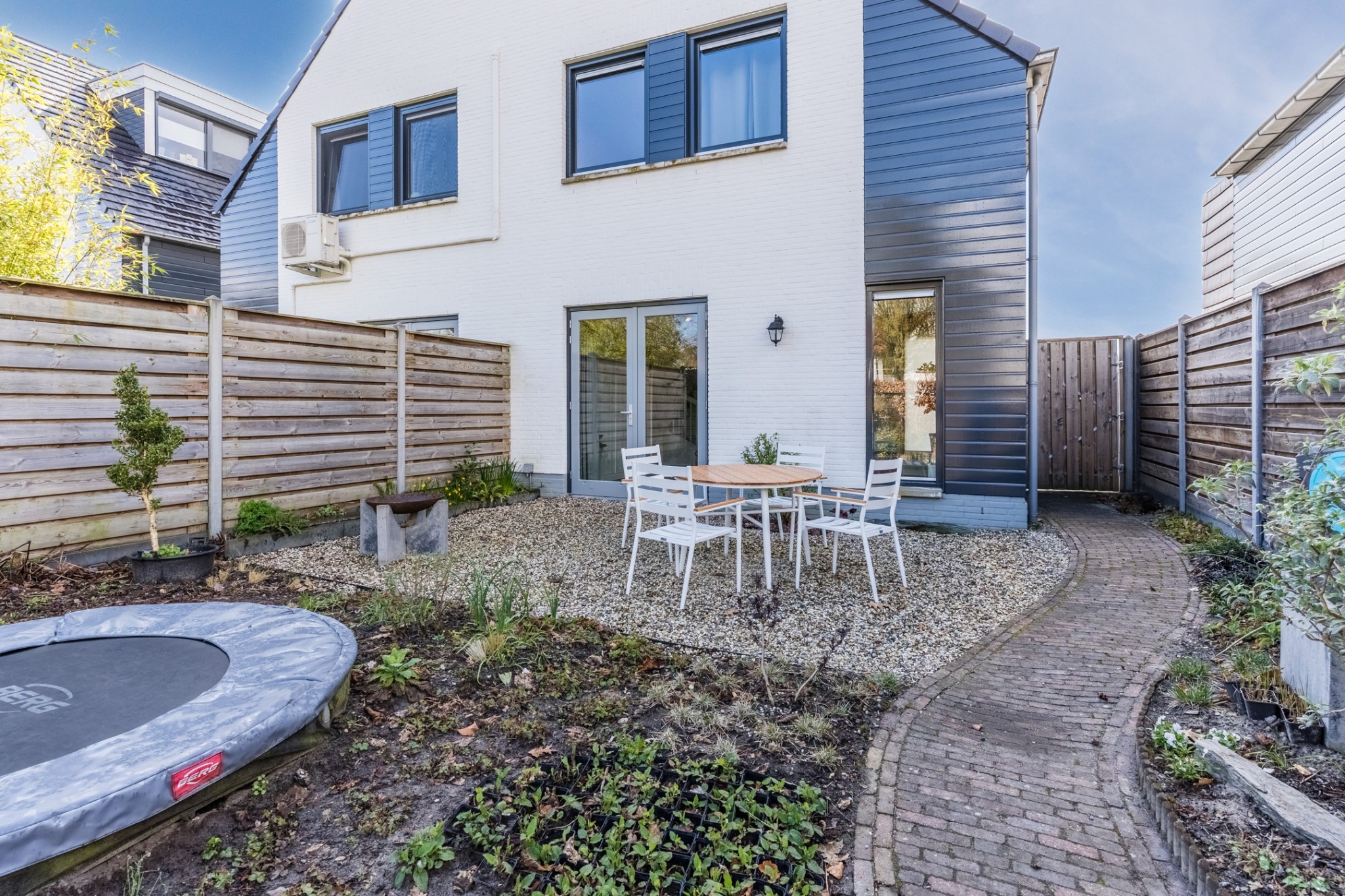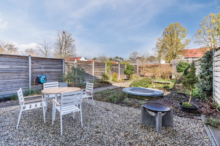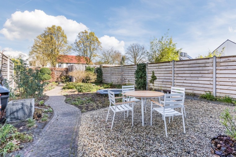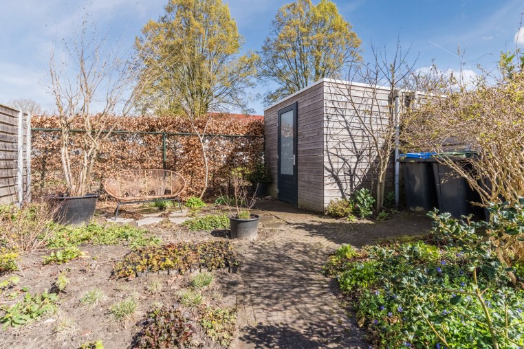 De achtertuin is middels een poort aan de zijkant bereikbaar. Deze ruime achtertuin biedt veel privacy, beschikt over 2 terrassen en een berging achter in de tuin.