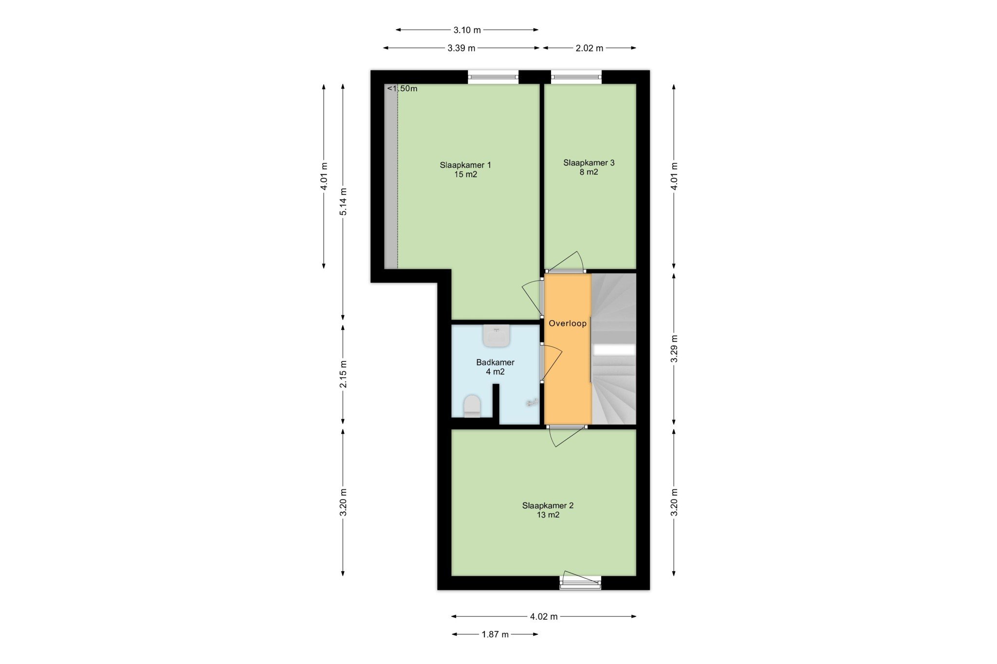 Slaapkamer, ± 13 m², met klik-PVC en draai-/kiepramen.