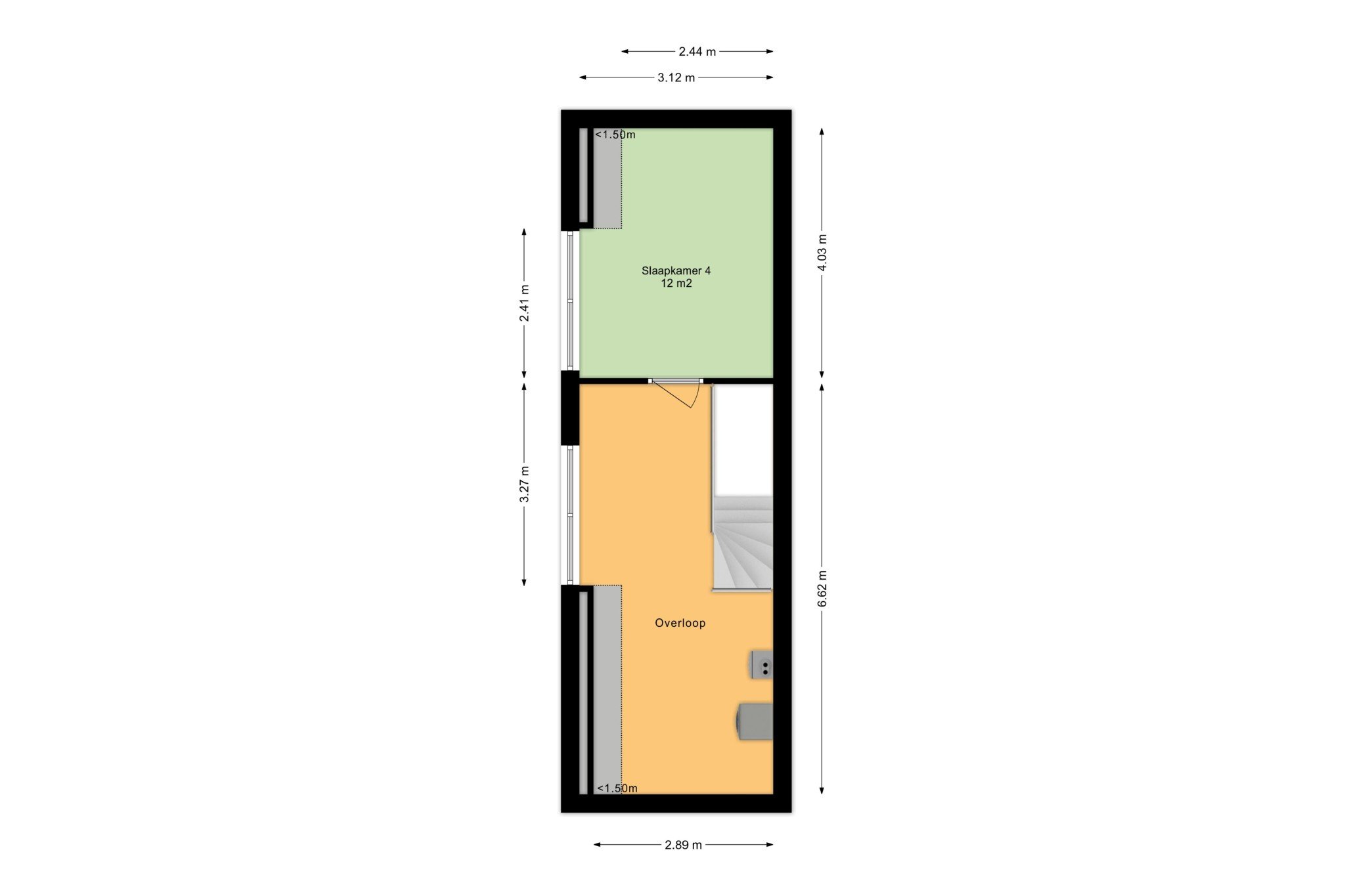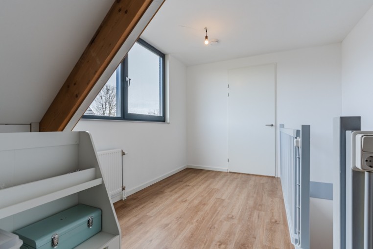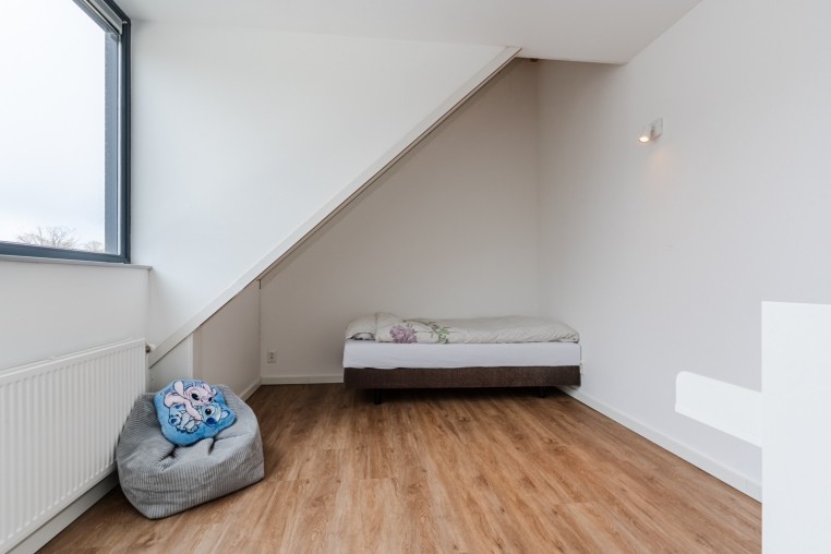 Extra slaapkamer, ± 12 m², met klik-PVC en dakkapel.