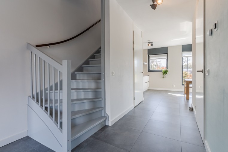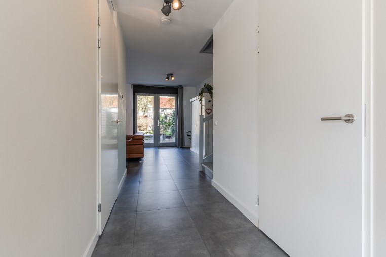 Entree, hal met tegelvloer en vloerverwarming, uitgebreide meterkast met automatische groepen.