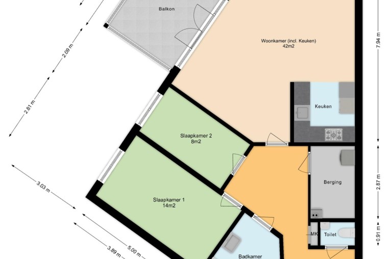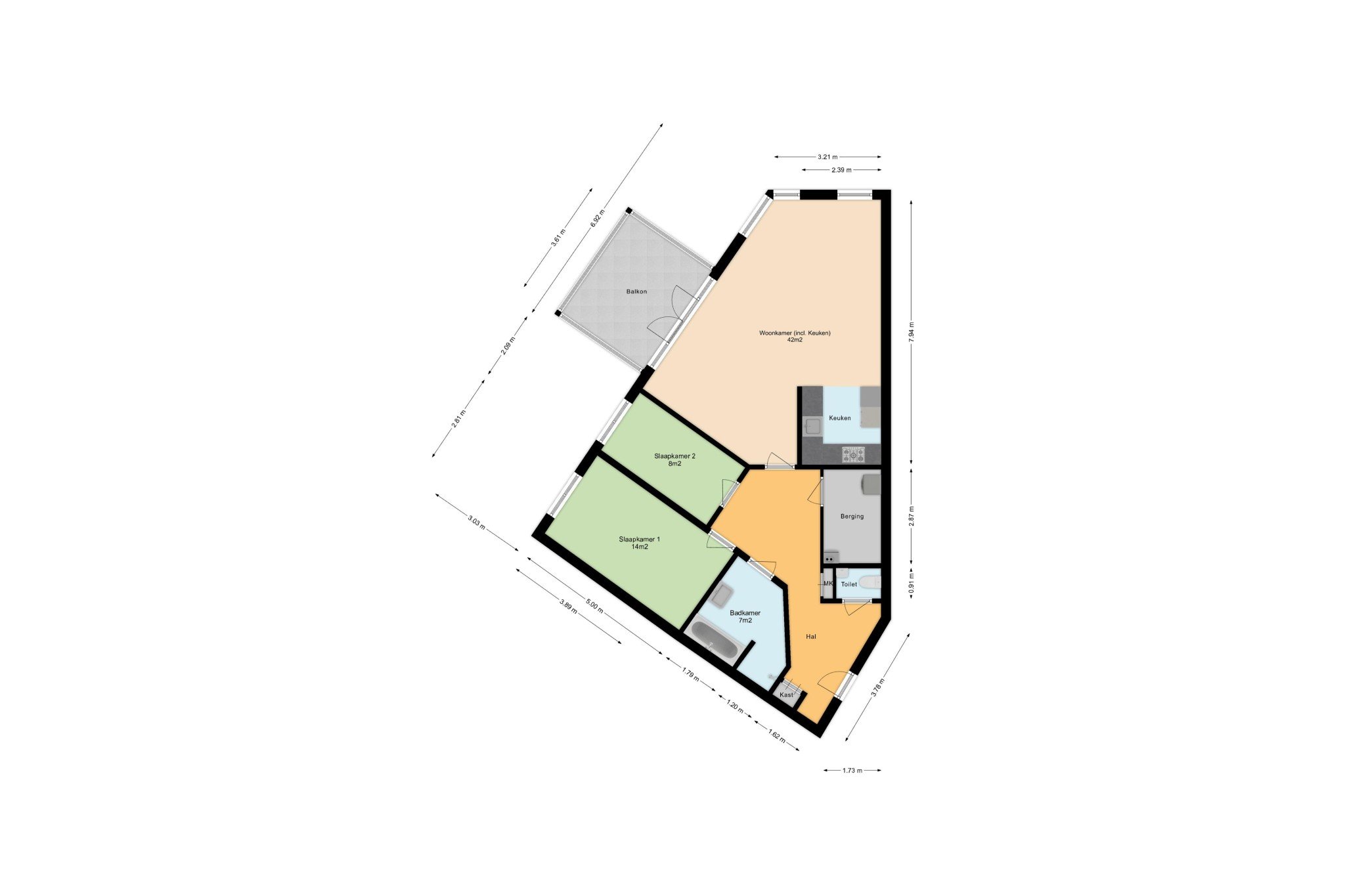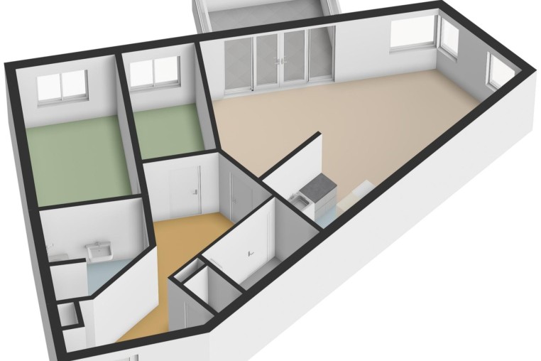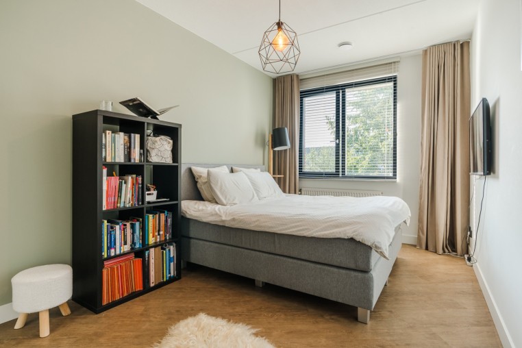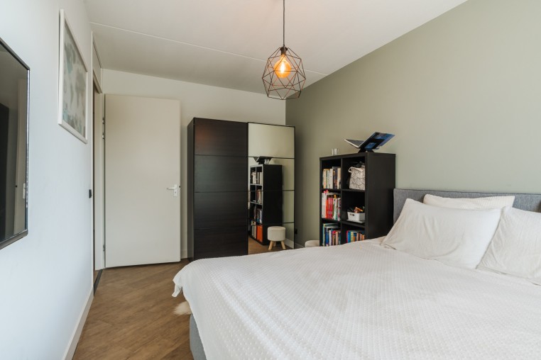 Slaapkamer, ± 8 m², voorzien van PVC vloer.