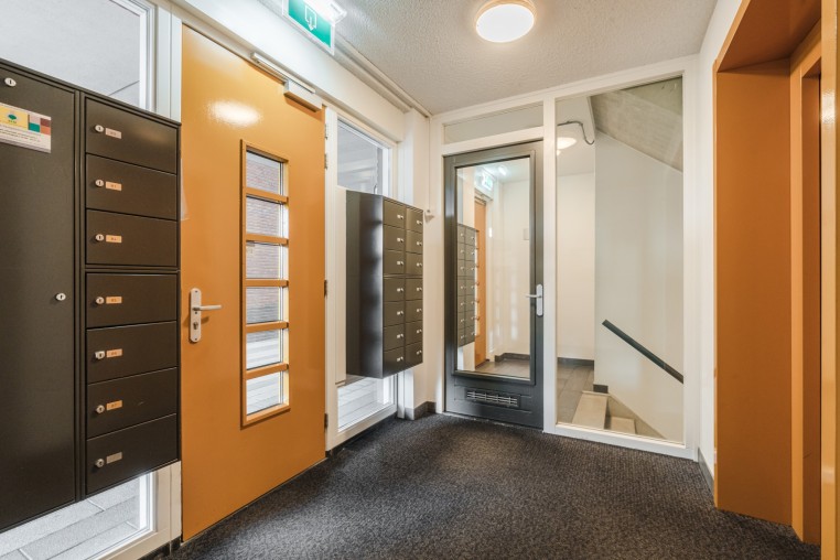 Keurige en ruime entree met bellentableau, videofooninstallatie en toegang tot lift en trappenhuis.