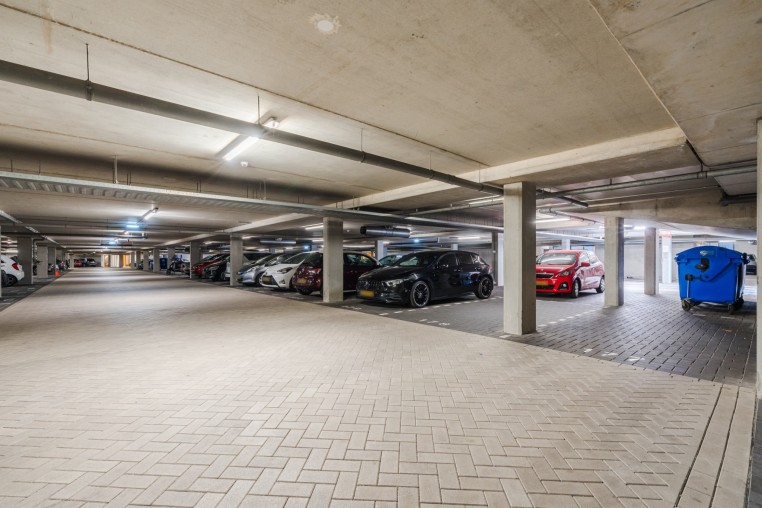 Ruime parkeergarage met eigen parkeerplaats en eigen berging.