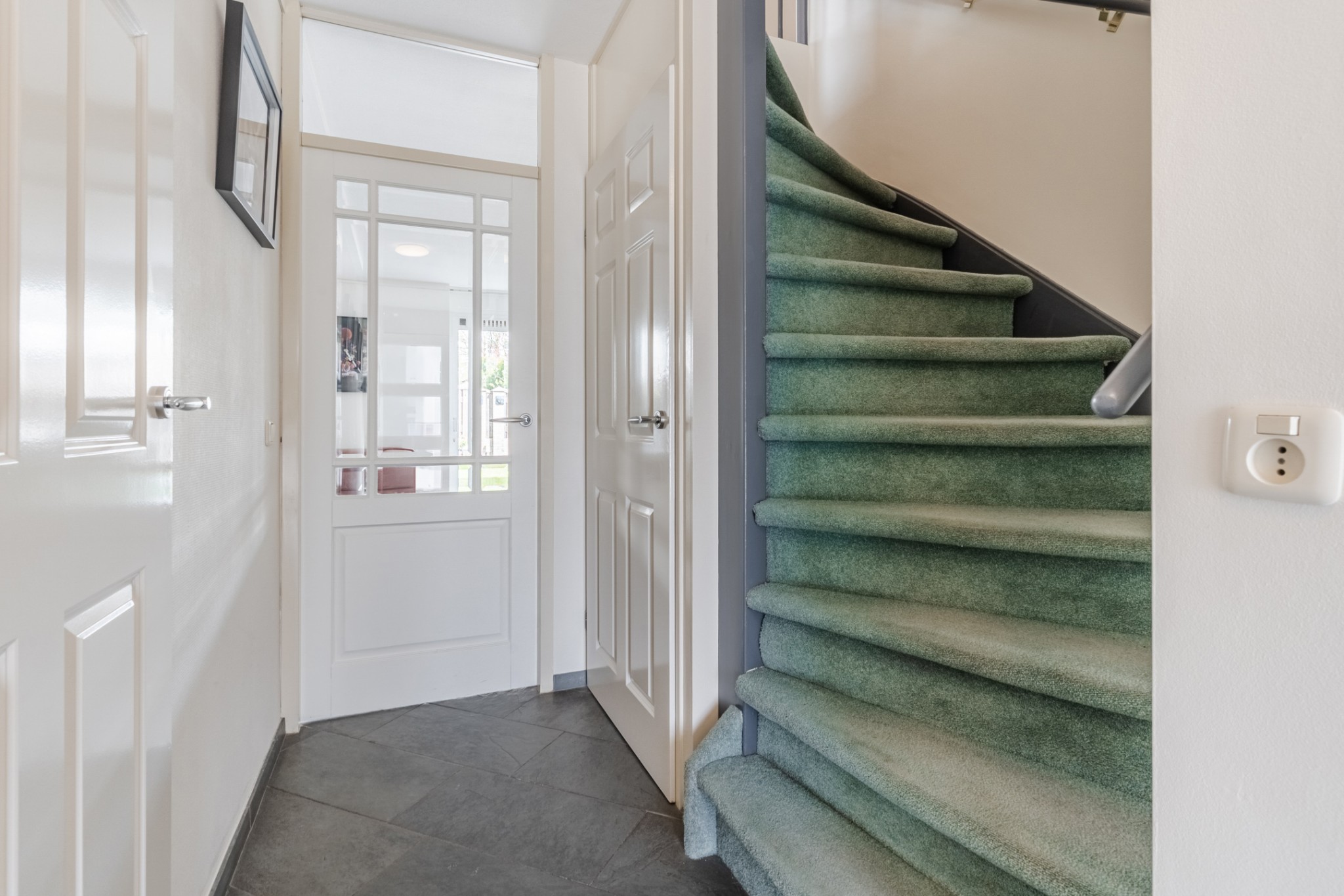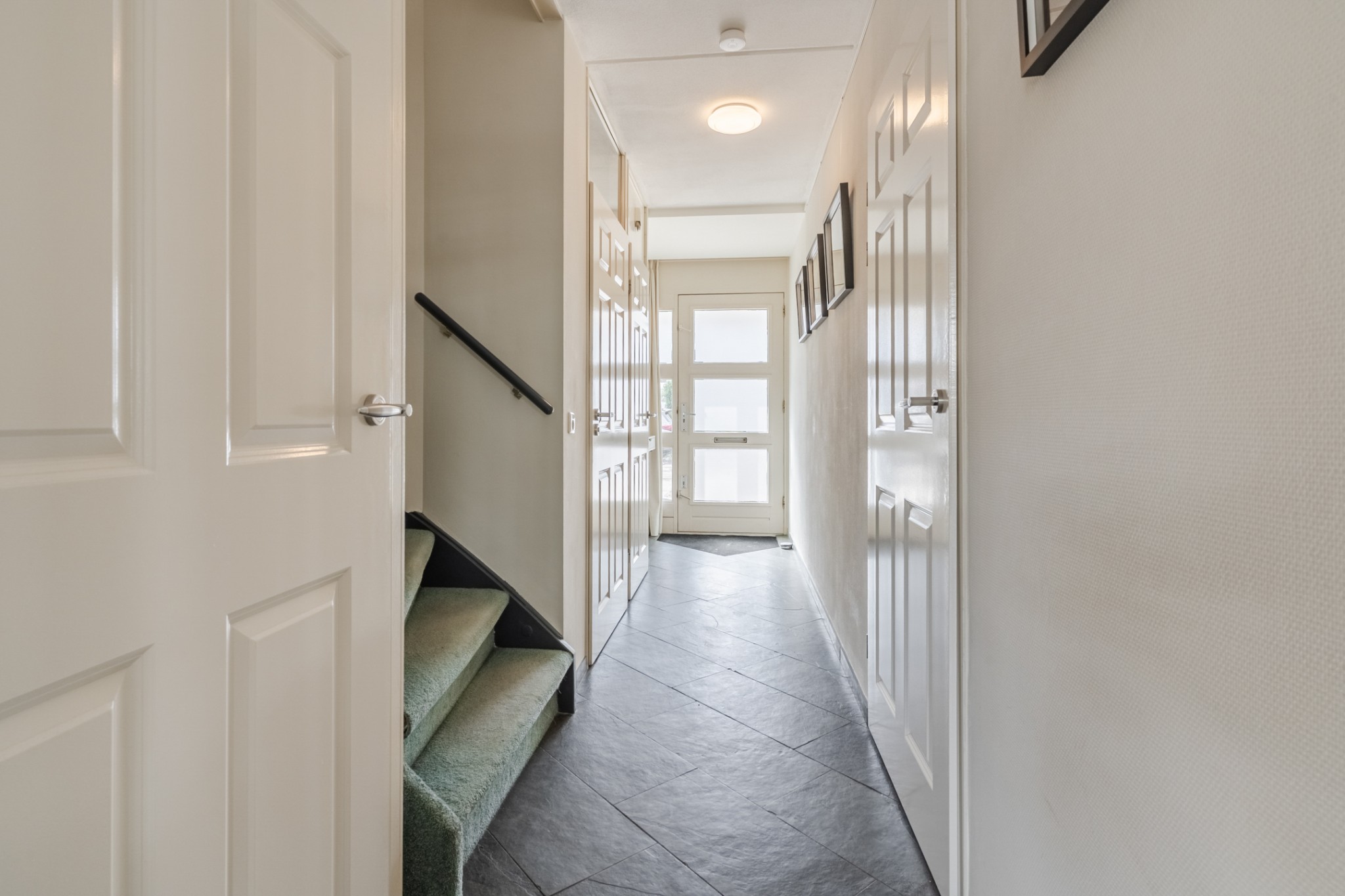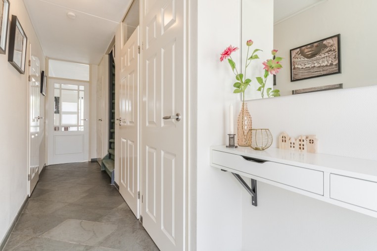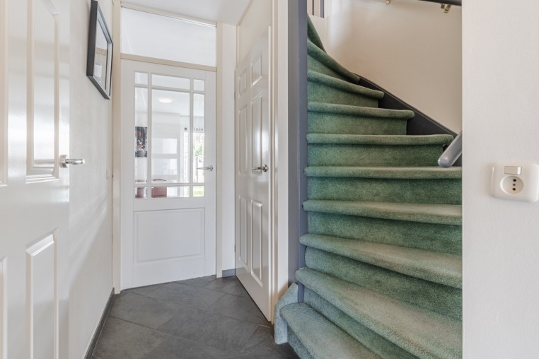 Entree, hal met meter- en praktische trapkast, toegang tot het toilet en inpandige garage alsook de trapopgang naar de 1e verdieping.