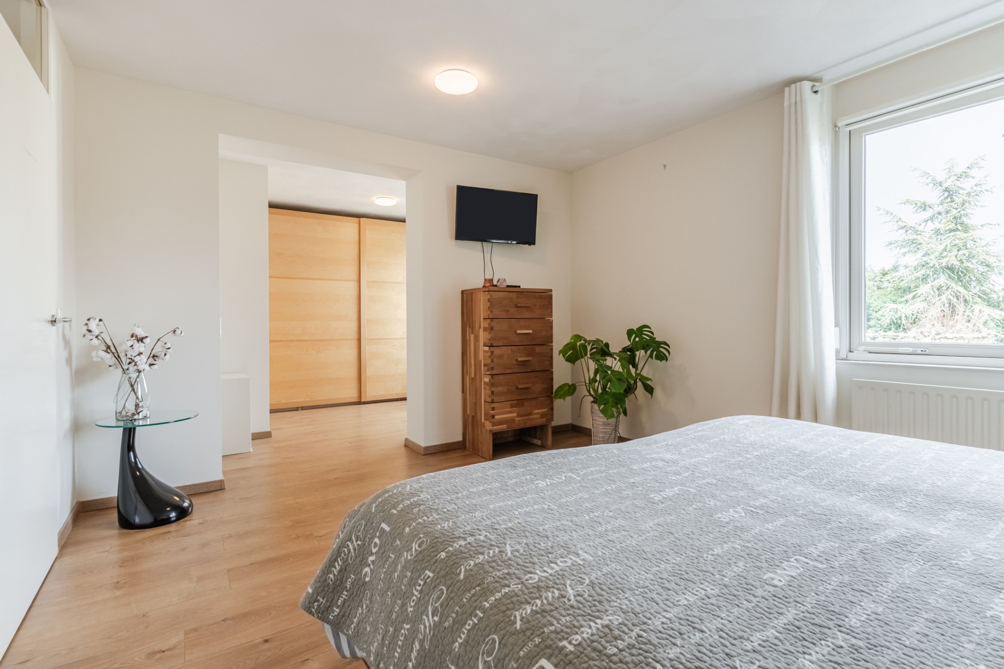 Slaapkamer 1, ± 24 m², zeer royaal uitgebouwd met een tv-aansluiting en een inloopkast over de gehele breedte van de kamer.