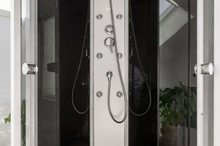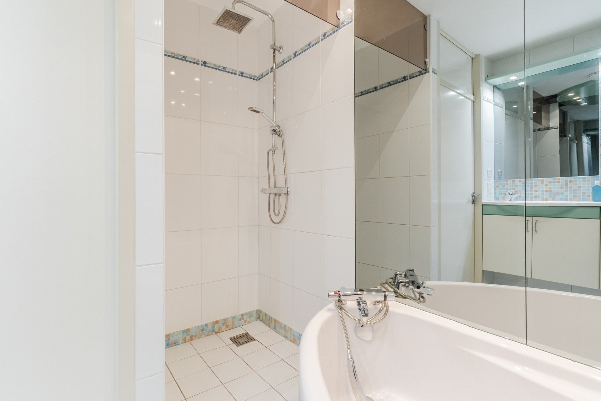 Badkamer 2, moderne badkamer voorzien van vloerverwarming, douche en wc (Sanibroyeur).