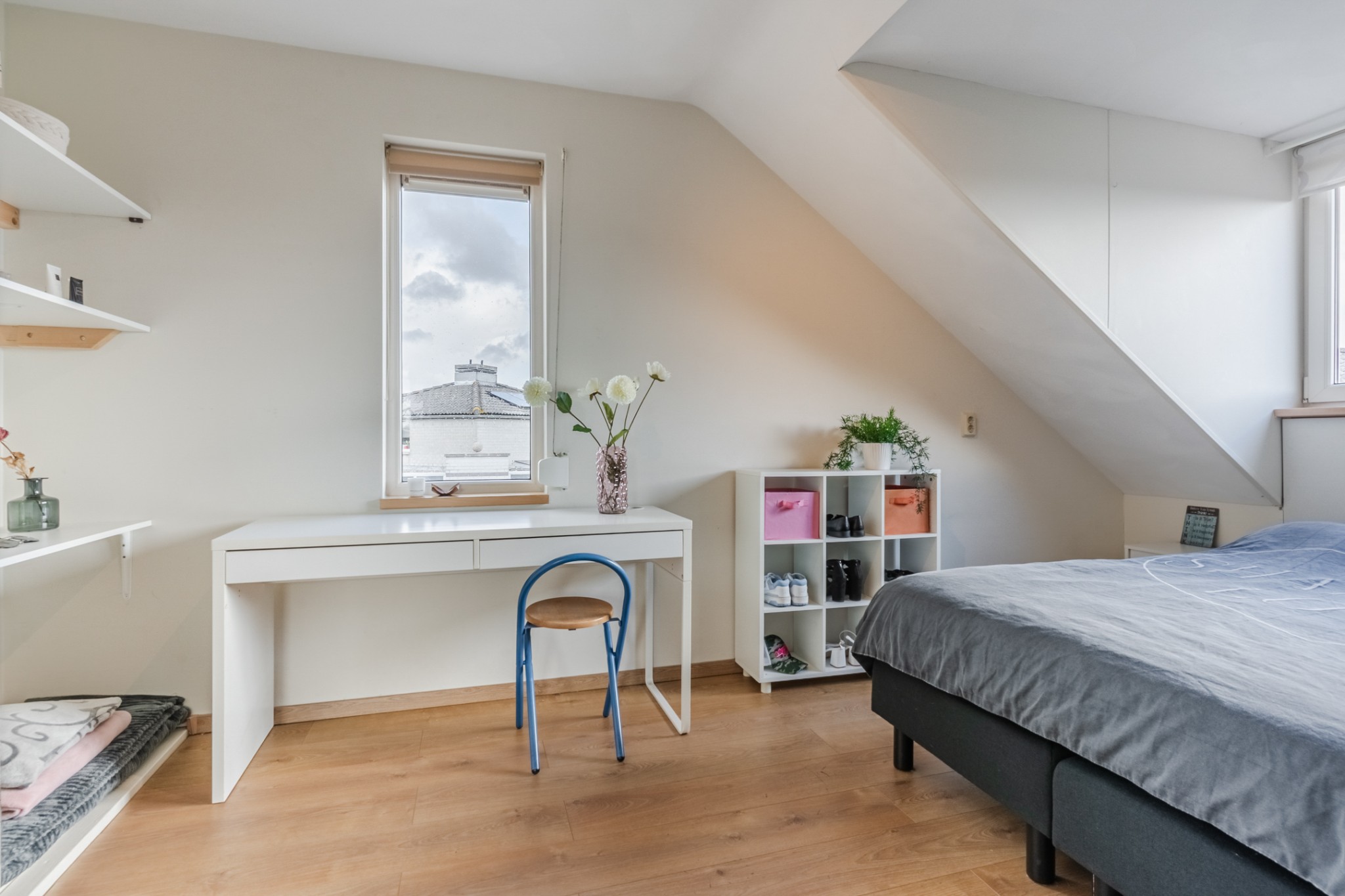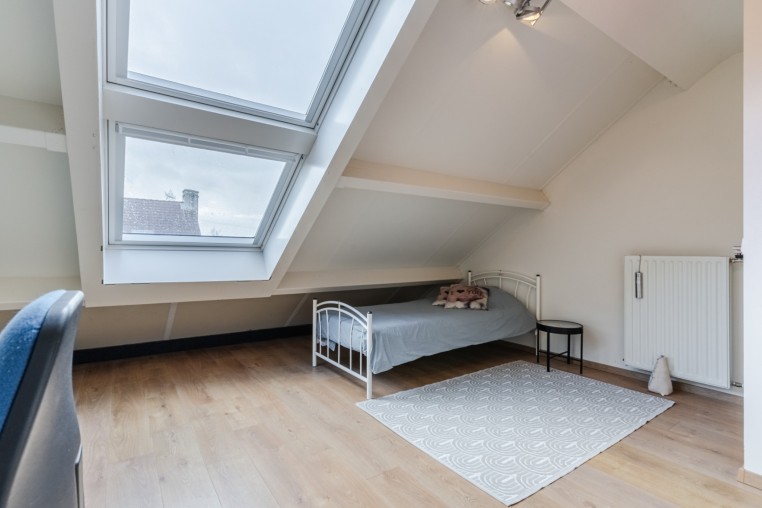 Slaapkamer 7, ± 12 m², voorzien van laminaatvloer en 2 Velux dakramen.