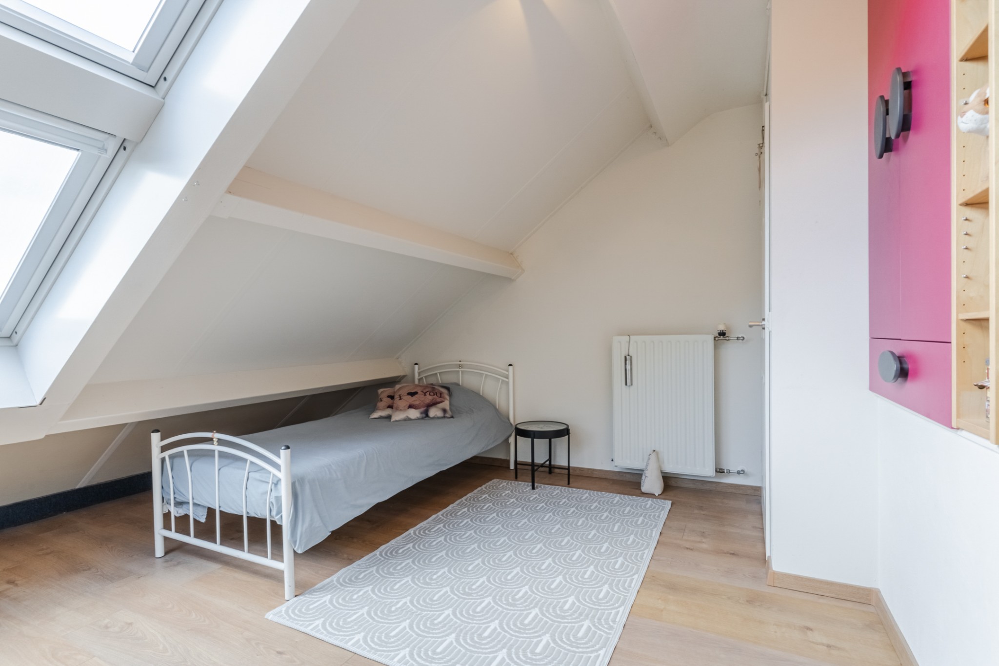 Slaapkamer 5, ± 15 m², voorzien van dakkapel, inbouwkasten en kast met combi-ketel (Intergas Xtreme, 2025), berging onder de kapschuinte en luik met vlizotrap naar bergzolder 1.