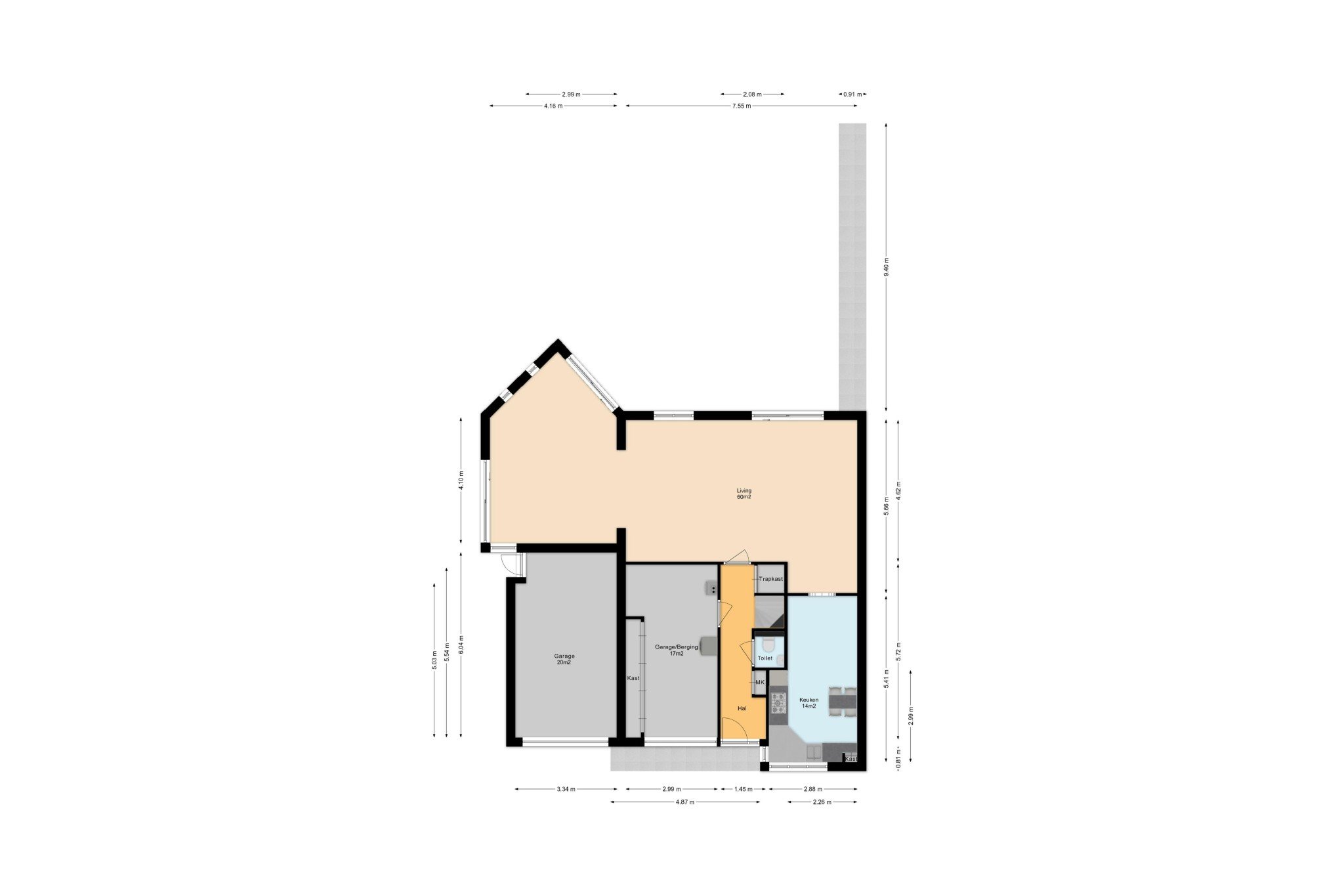 Garage 2, ± 20 m², is via de tuin bereikbaar, voorzien van een roldeur, vloerverwarming (voorbereid) en een smeerput. De ruimte kan bij de tuin worden betrokken door de roldeur aan de zijkant te openen, waardoor een overdekt terras ontstaat. Eventueel ook om te bouwen tot een kantoor-/werkruimte.