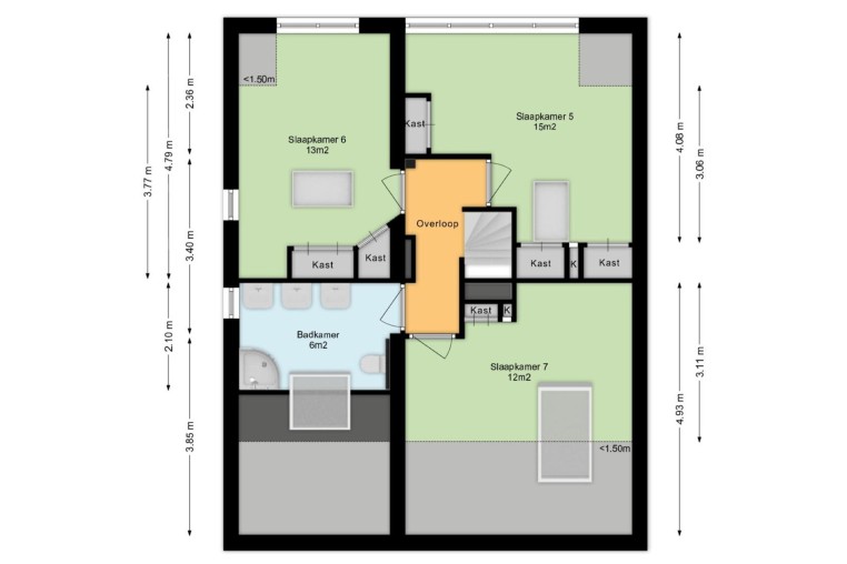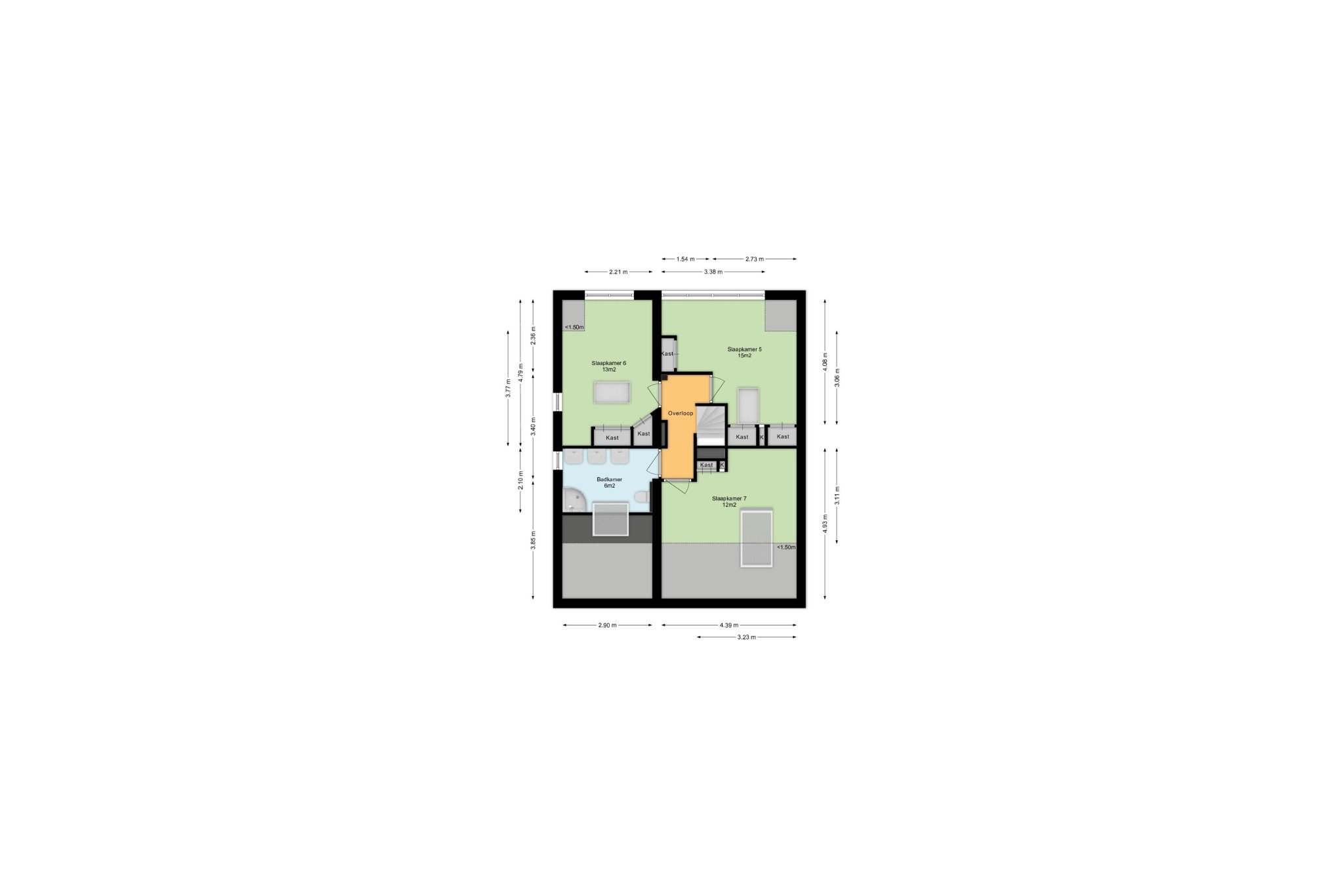 Slaapkamer 4, ± 7 m², voorzien van 2 inbouwkasten.