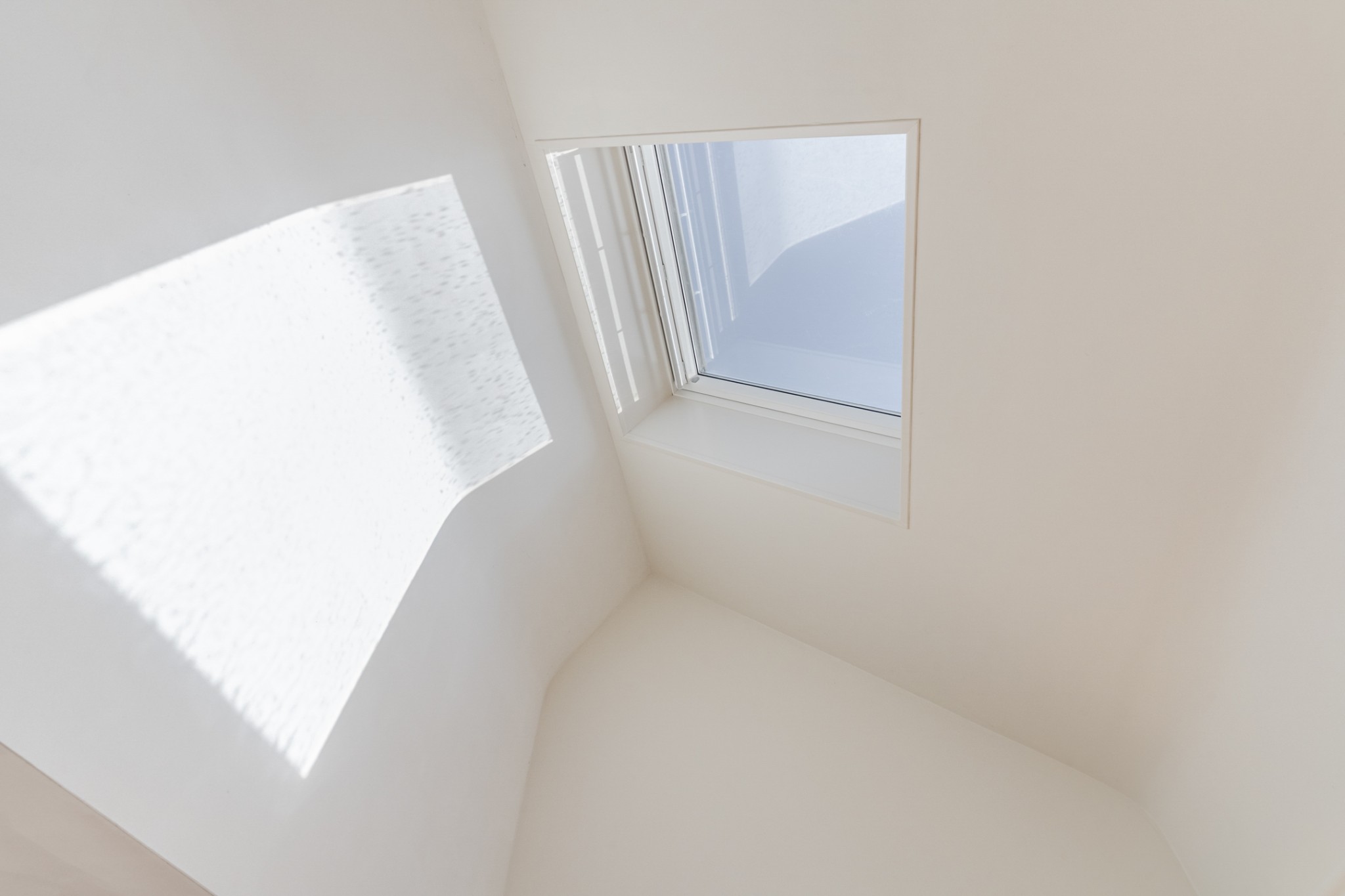 Slaapkamer 2, ± 14 m², Misschien wel de mooiste kamer van het huis met balkon; een prachtige ruimte met dubbele openslaande balkondeuren, lichtinval vanuit een vide met een elektrisch bedienbaar Velux dakraam en een extra raam in de zijgevel. De zeer fijne lichtinval maakt deze kamer uitzonderlijk prettig om in te verblijven. Ook ideaal als bijvoorbeeld atelier.
