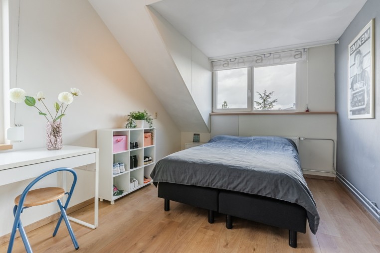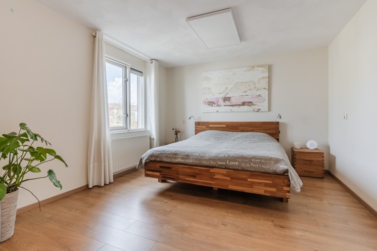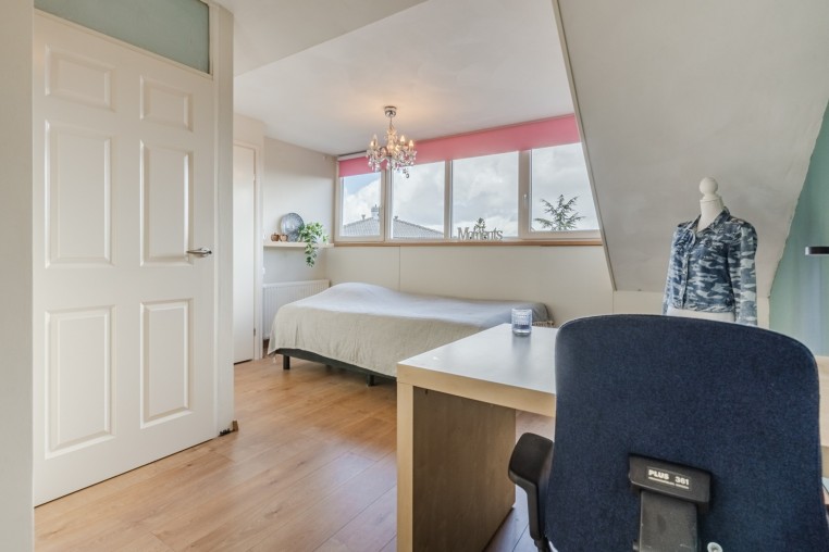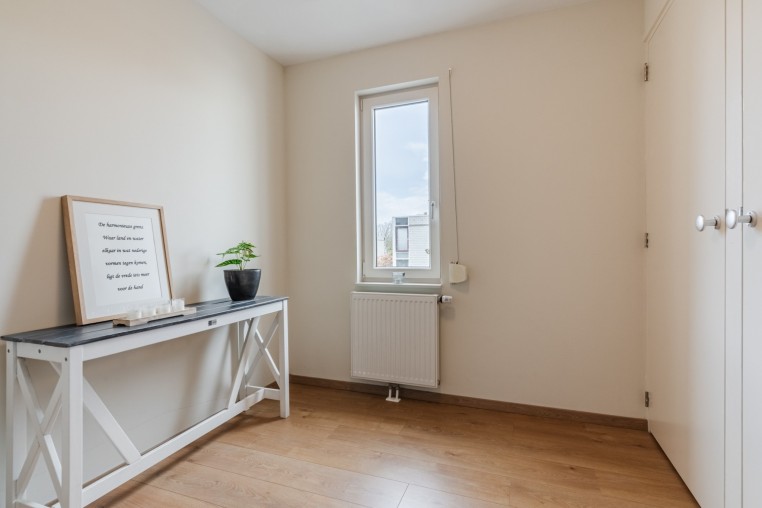 Een absoluut pluspunt van deze woning is de tweede verdieping, waar zich drie ruime slaapkamers bevinden en de tweede badkamer. De gehele 2e verdieping is voorzien van een laminaatvloer die doorloopt in alle kamers zonder drempels. De ramen aan de zijkant van het huis zijn voorzien van handmatig bedienbare rolluiken.