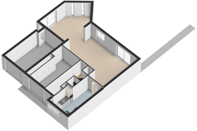De ramen aan de zij- en achterkant zijn voorzien van handmatig bedienbare rolluiken. De balkondeuren en het raam aan de voorkant van het huis zijn voorzien van elektrisch bedienbare rolluiken.
