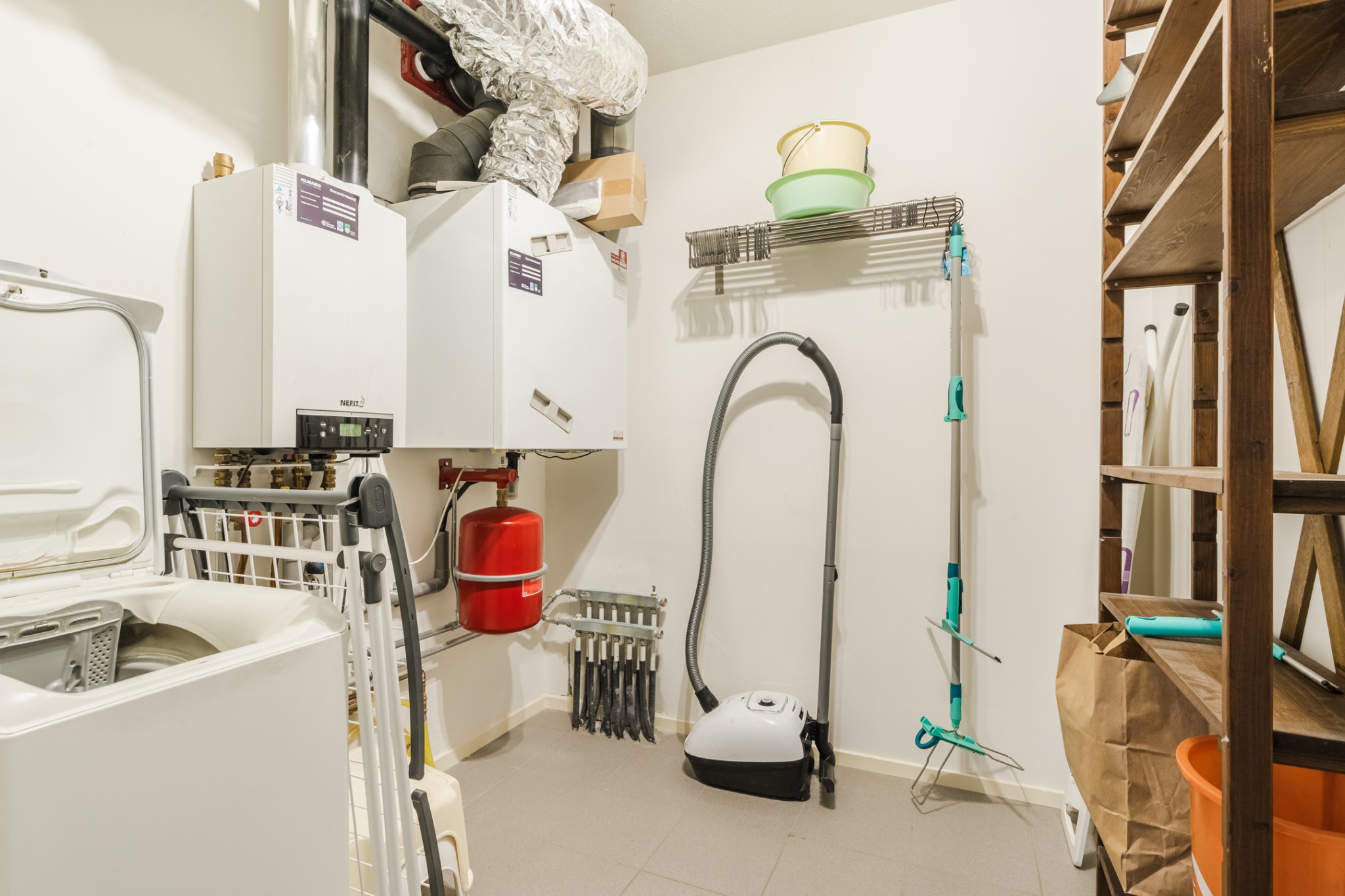 Inpandige berging, ± 4 m², met opstelling combiketel (Nefit, ± 2009), warmte terugwin installatie (WTW) en aansluitingen wasapparatuur.