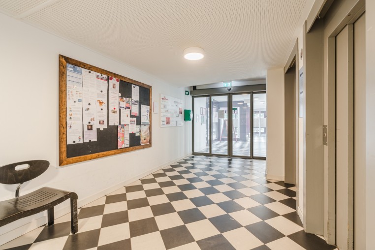 Fraaie en ruime gezamenlijke entree, hal met brievenbussen, bellentableau, videofooninstallatie en toegang tot lift.
