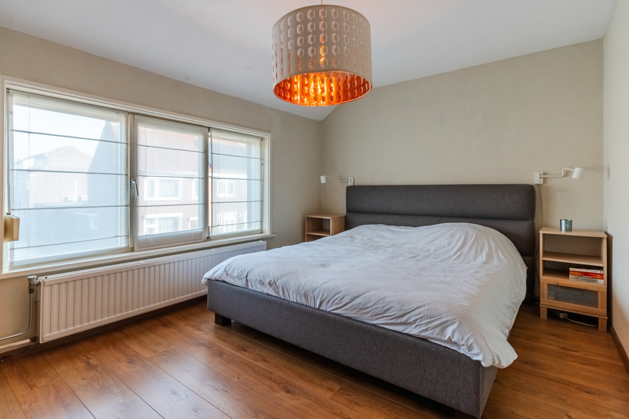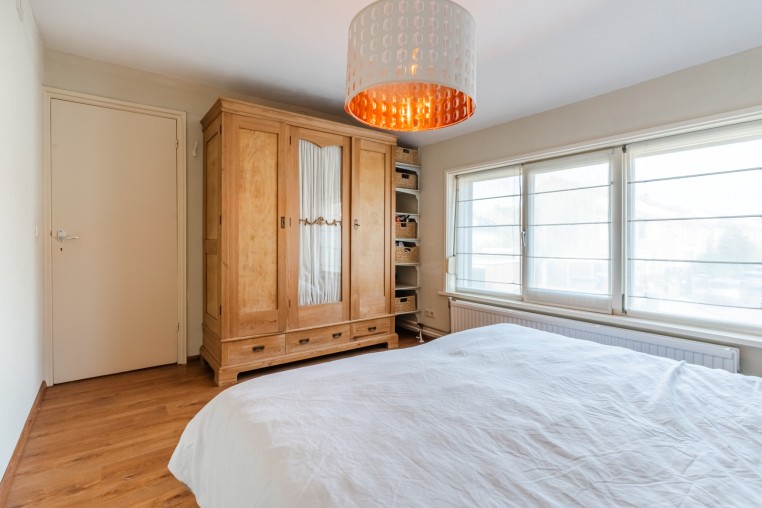 Ruime slaapkamer, ± 13 m², voorzien van laminaatvloer en stucwerk wanden en -plafond en handmatig bedienbaar rolluik.