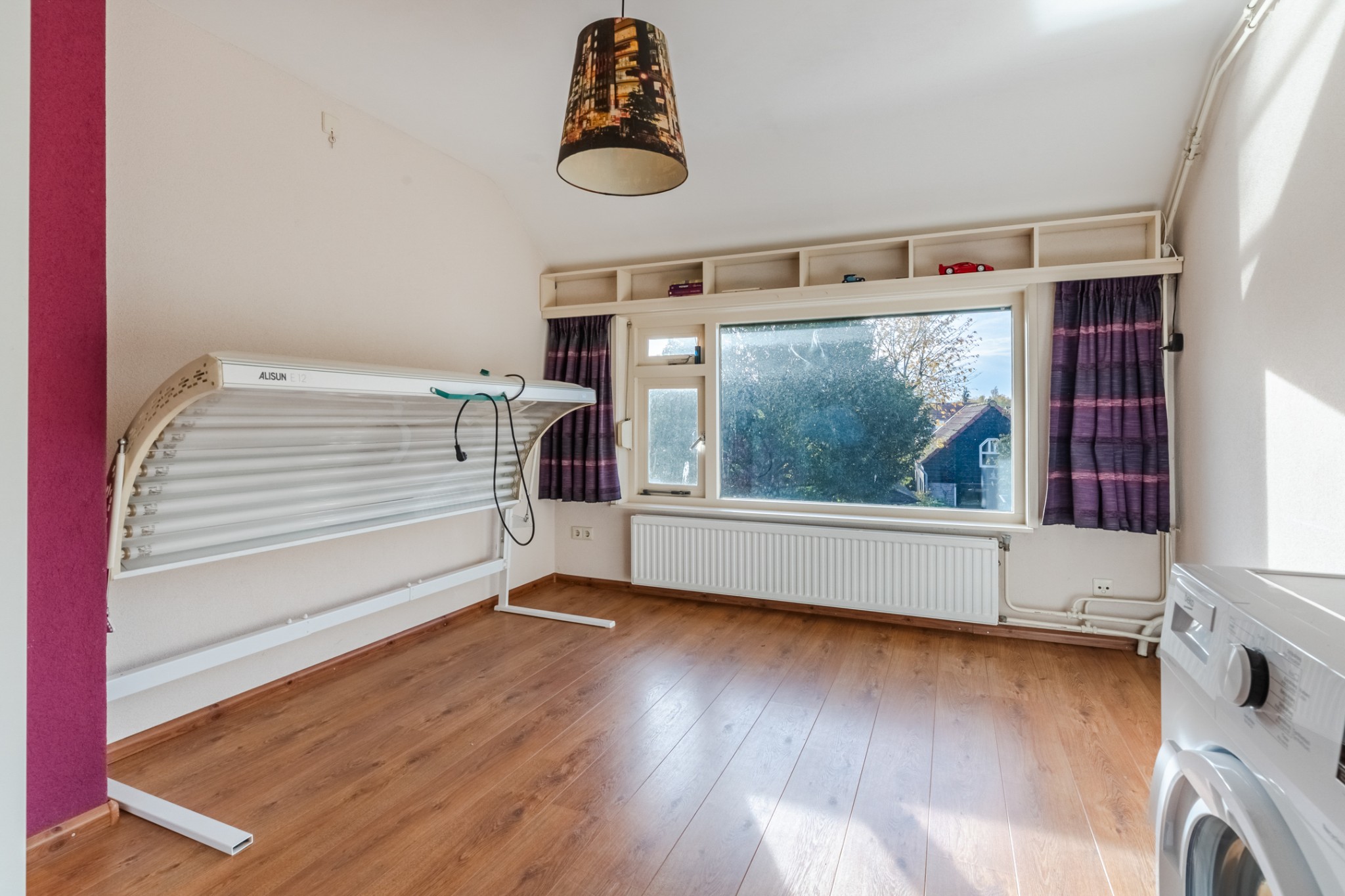 In de achtertuin bevindt zich een zeer ruim atelier/berging, ± 28 m², met dubbele beglazing, dak- en spouwmuurisolatie en tevens voorzien van elektra (inclusief 3-fasen), water en een royale vliering. Dit atelier/berging is voor vele doeleinden geschikt.