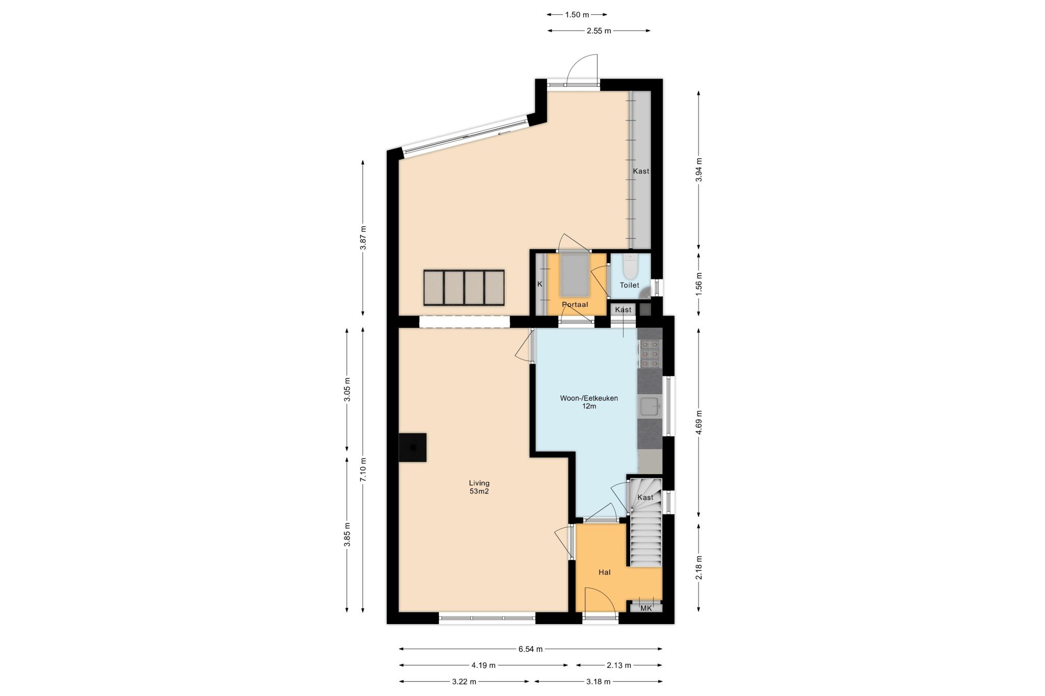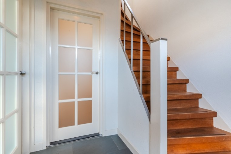 Entree; hal met fraaie tegelvloer met vloerverwarming, meterkast en trapopgang naar 1e verdieping.