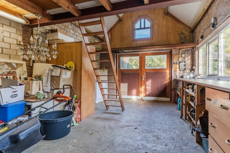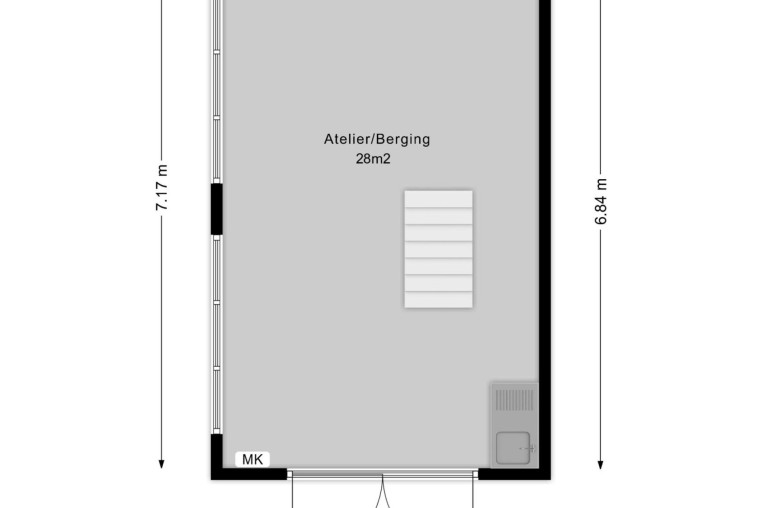 * Zeer ruim atelier/berging, ± 28 m², welke vanuit de achtertuin te bereiken is.