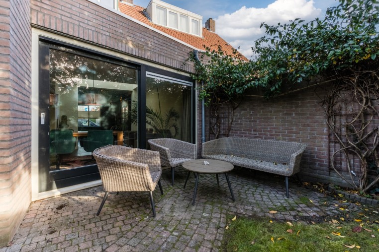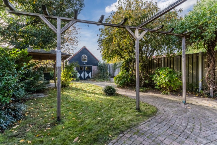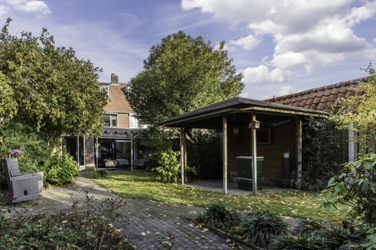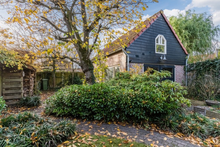 IN RUSTIGE WOONOMGEVING GELEGEN SFEERVOLLE, KARAKTERISTIEKE TWEE-ONDER-EEN-KAP WONING OP RUIM PERCEEL MET ROYAAL ATELIER/BERGING EN LEUK AANGELEGDE PRIVACY BIEDENDE ACHTERTUIN.