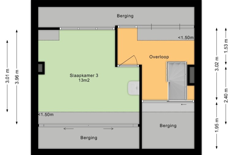 * Via vlizotrap in portaal op de begane grond is een ruime bergzolder te bereiken.