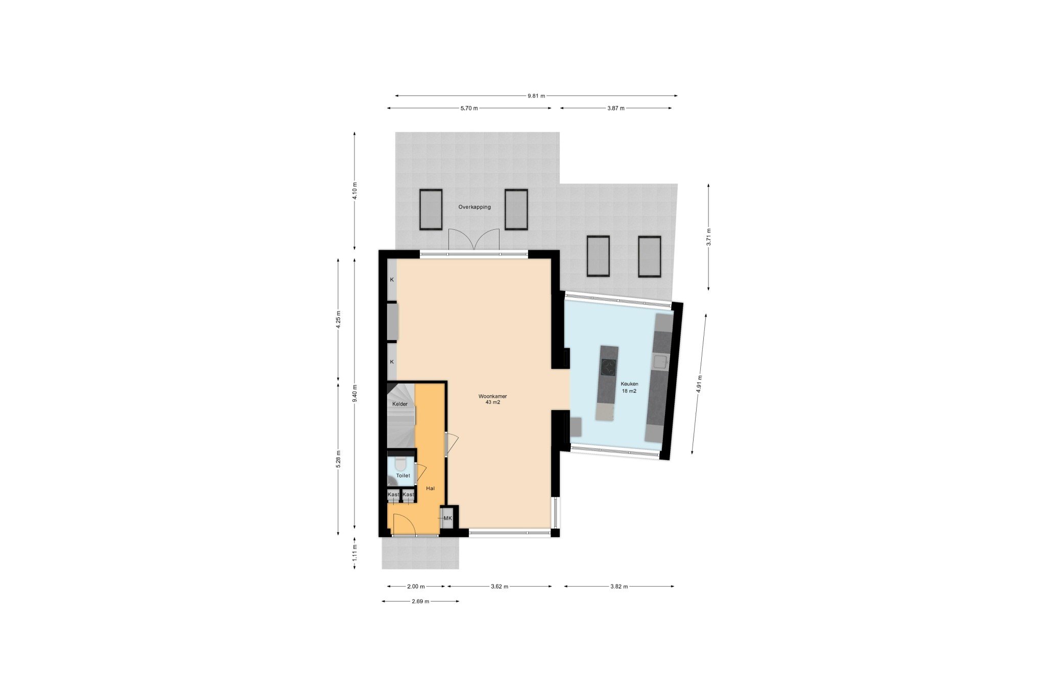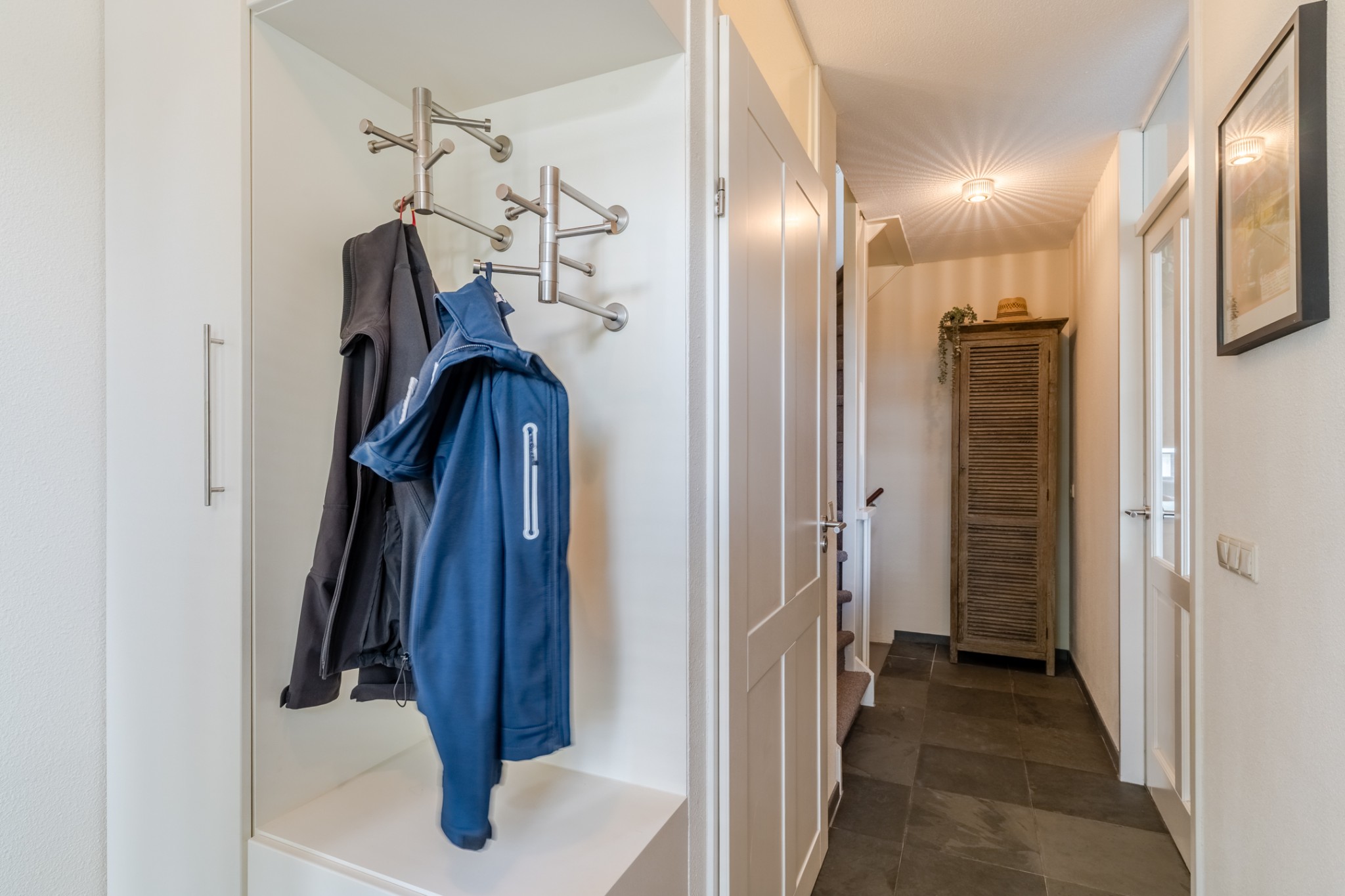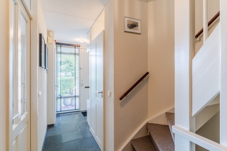 Door middel van een trapje bereikt u de overdekte entree, ruime hal voorzien van natuurstenen vloer met vloerverwarming, meterkast en trapopgang naar 1e verdieping en trap naar souterrain.