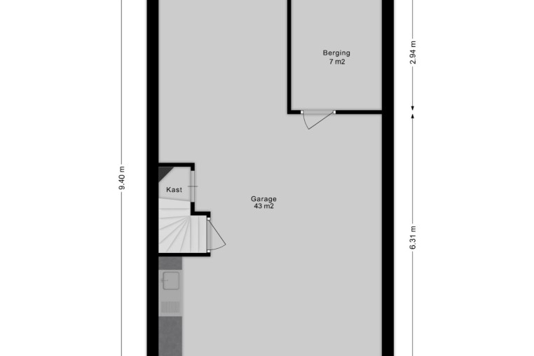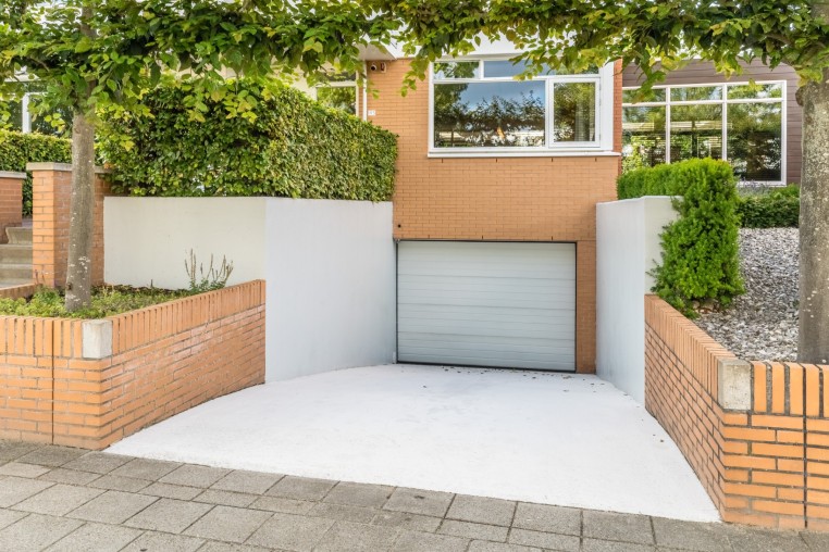 Grote garage, ± 43 m², met bergkast onder vaste trap, separate berging, unit t.b.v. centraal stofzuigsysteem, unit t.bv. vloerverwarming, RVS keukenblad en elektrisch bedienbare sectionaal deur.