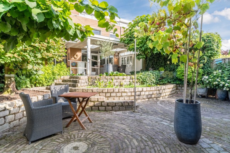 Leuk aangelegde voortuin met inrit naar souterrain/garage.