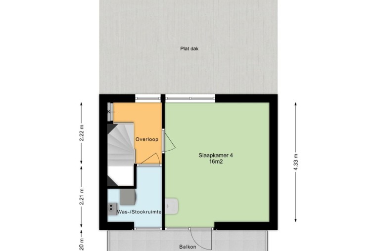 Ruime 4e slaapkamer, ± 16 m², met airconditioning, wastafelmeubel met vaste wastafel en spiegelkast, rolluik en deur naar het balkon.