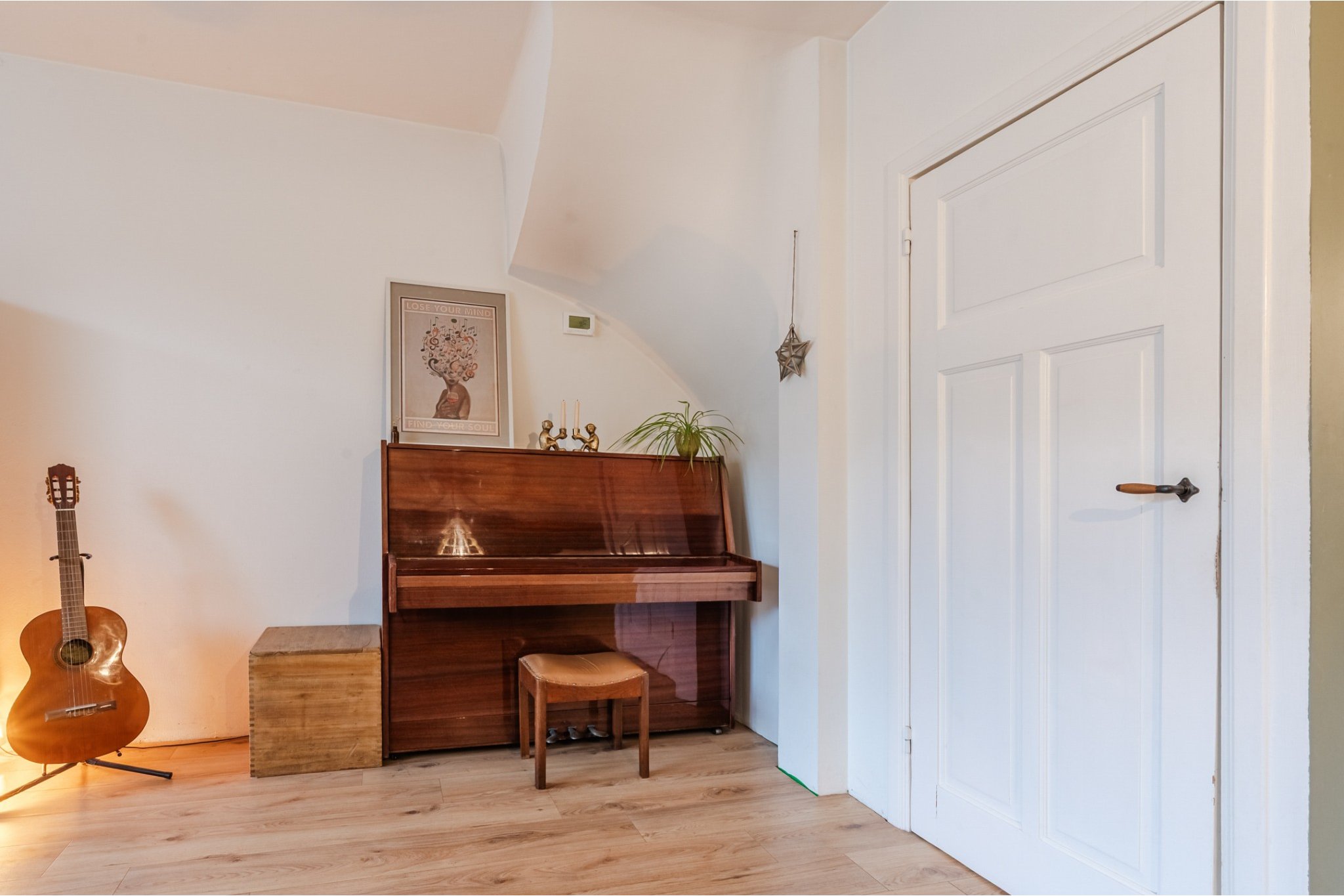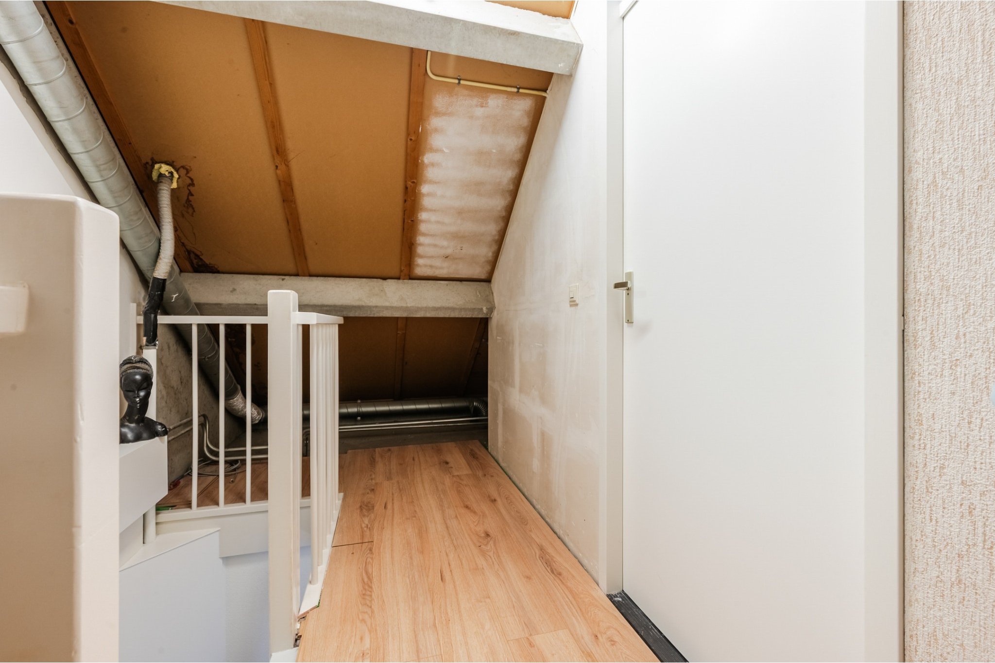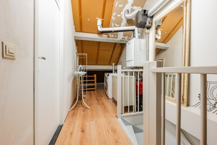 Bereikbaar middels vaste trap, voorzolder met laminaatvloer, opstelling combiketel (Remeha, ± 2015) en aansluiting wasapparatuur.