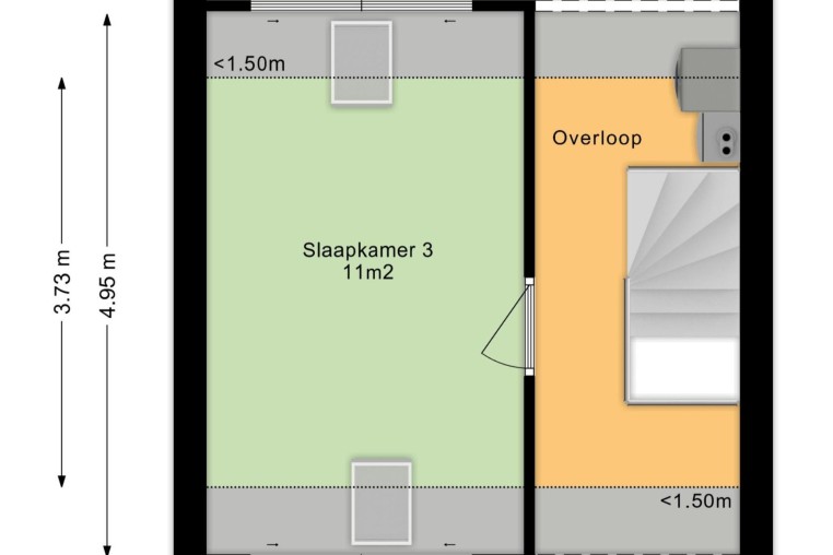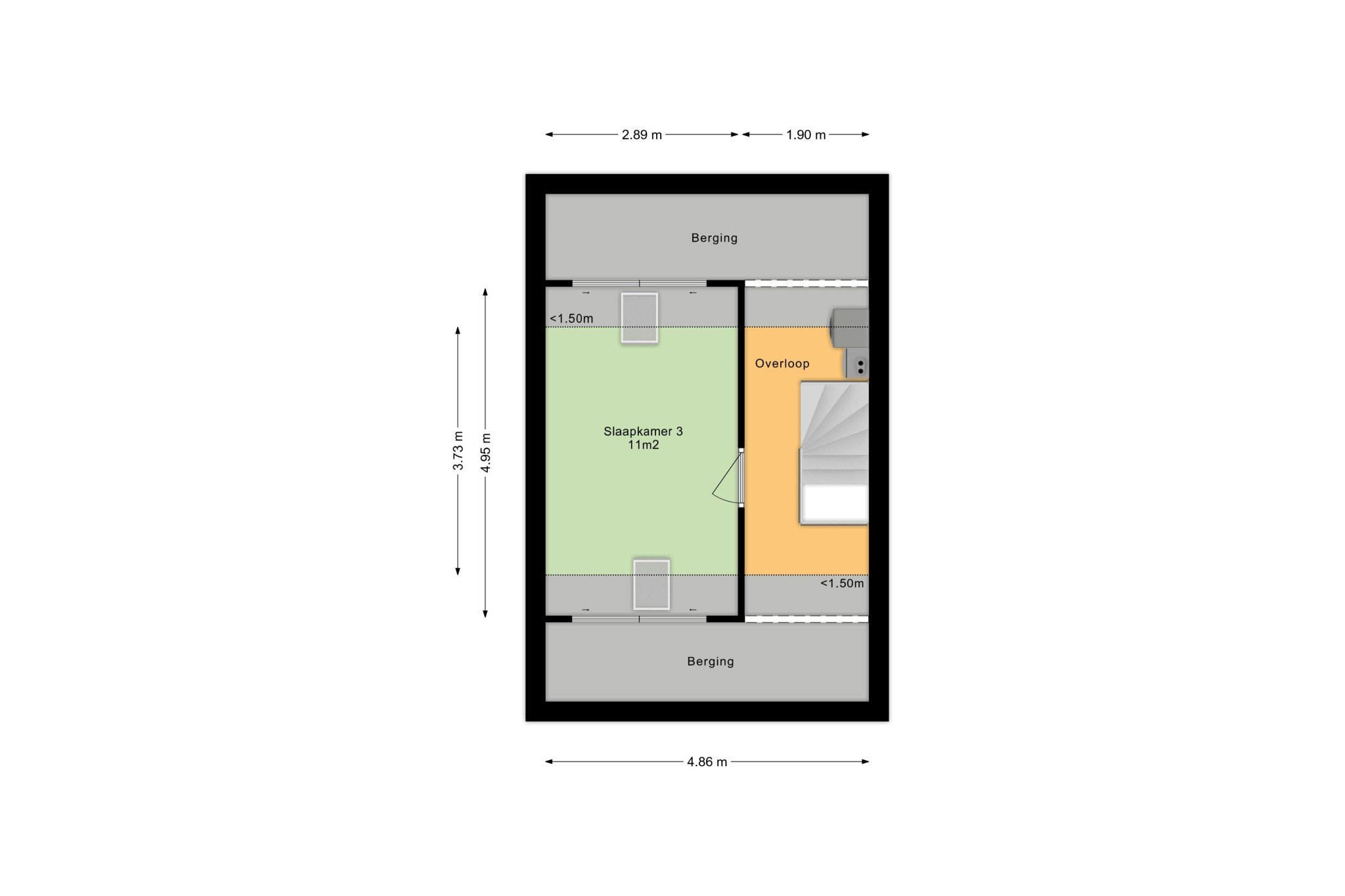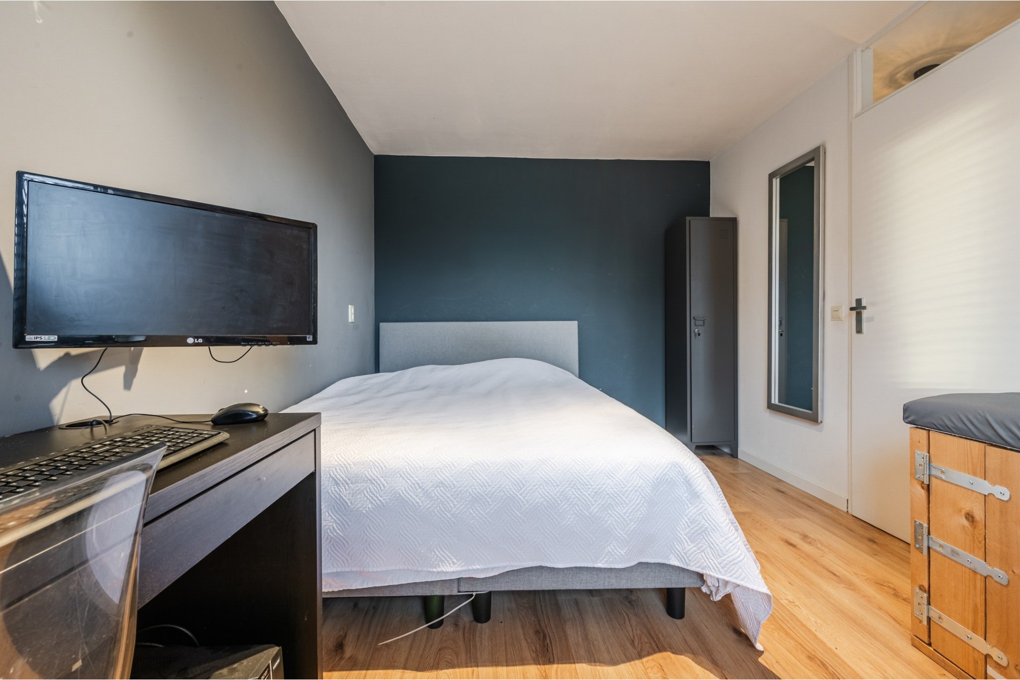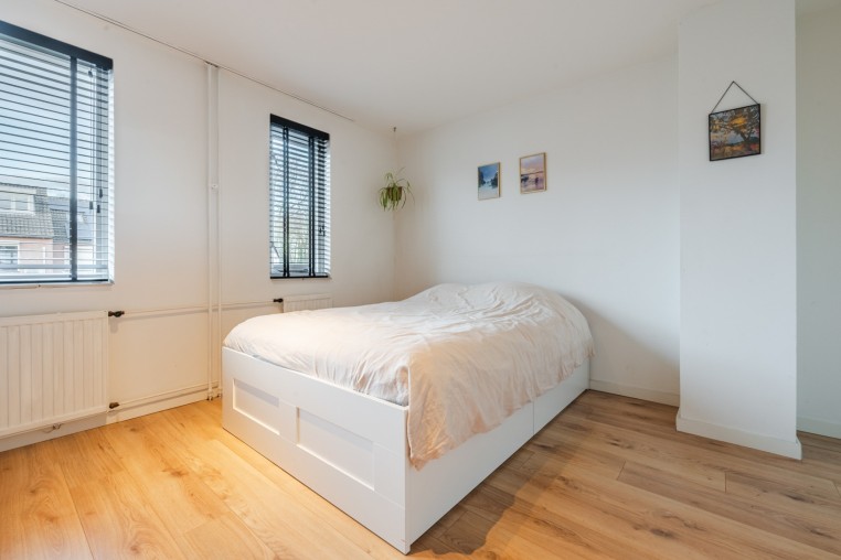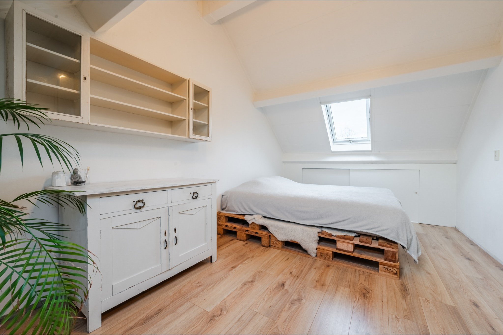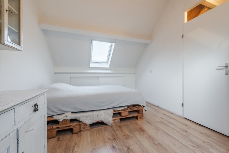 Slaapkamer, 11 m², met laminaatvloer, dakramen en bergruimte onder de kapschuinte.
