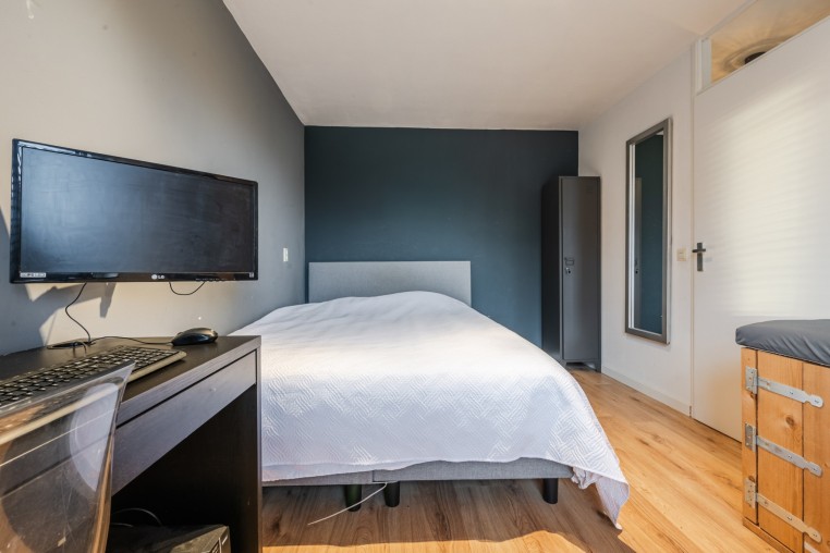 Slaapkamer, 17 m², met laminaatvloer en inloopkast met praktische kastruimte