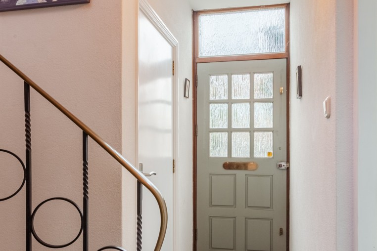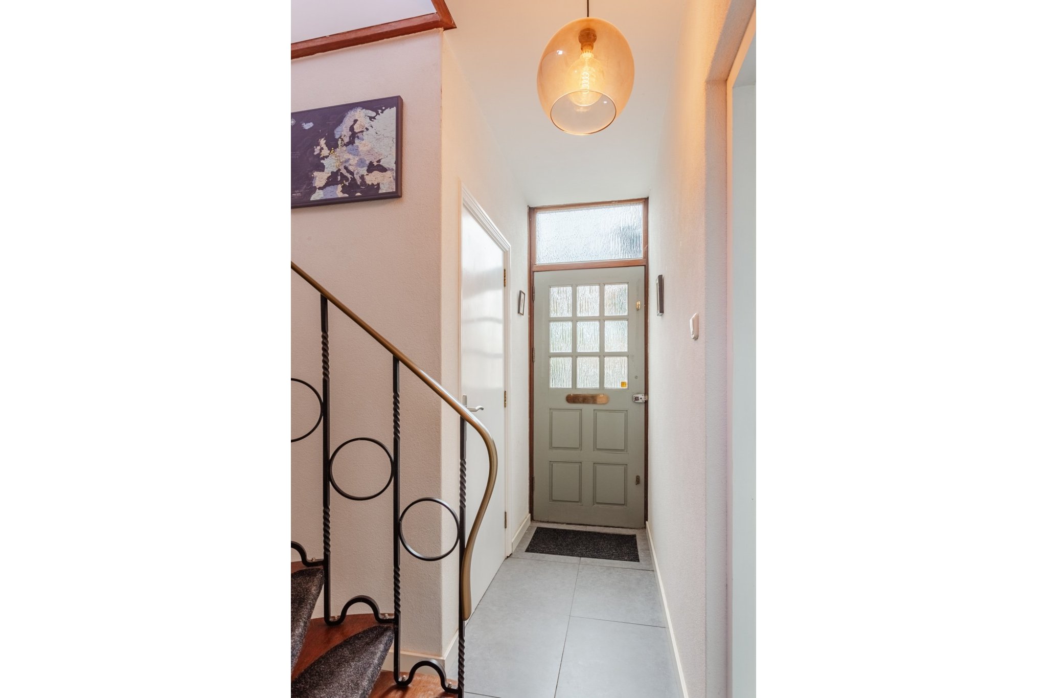 Hal met tegelvoer en meterkast.