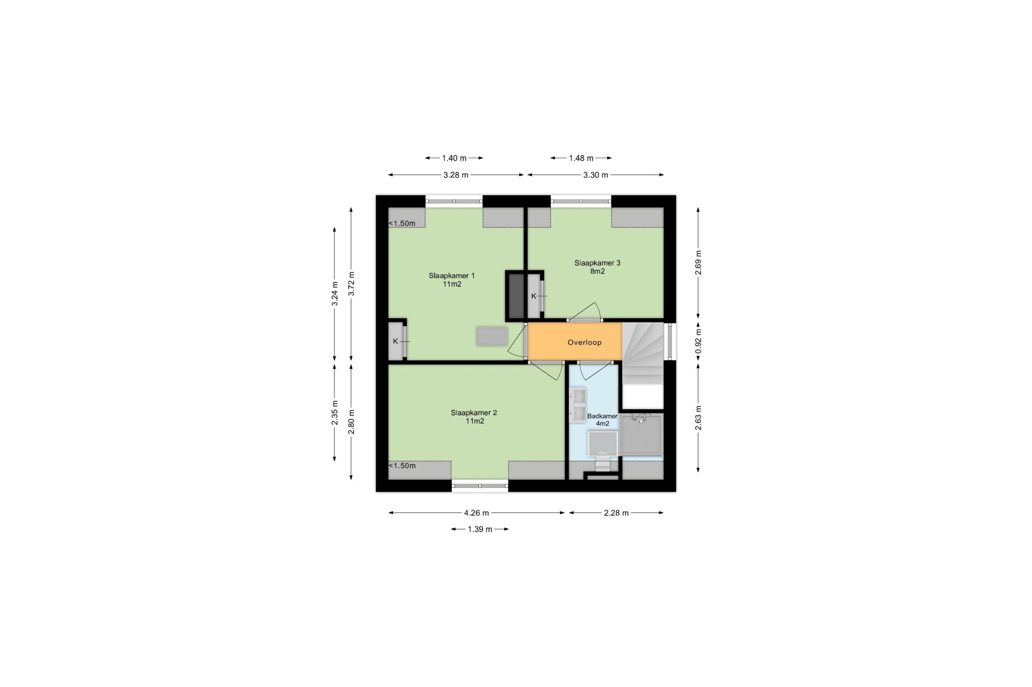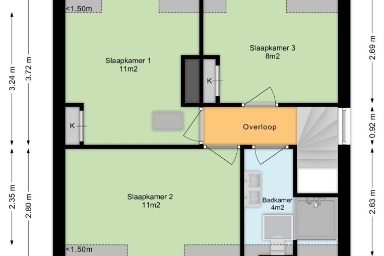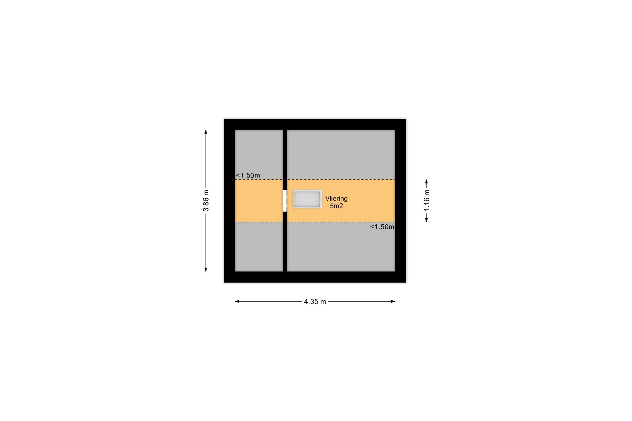 Bereikbaar middels vlizo-trap, deels begaanbare bergzolder.