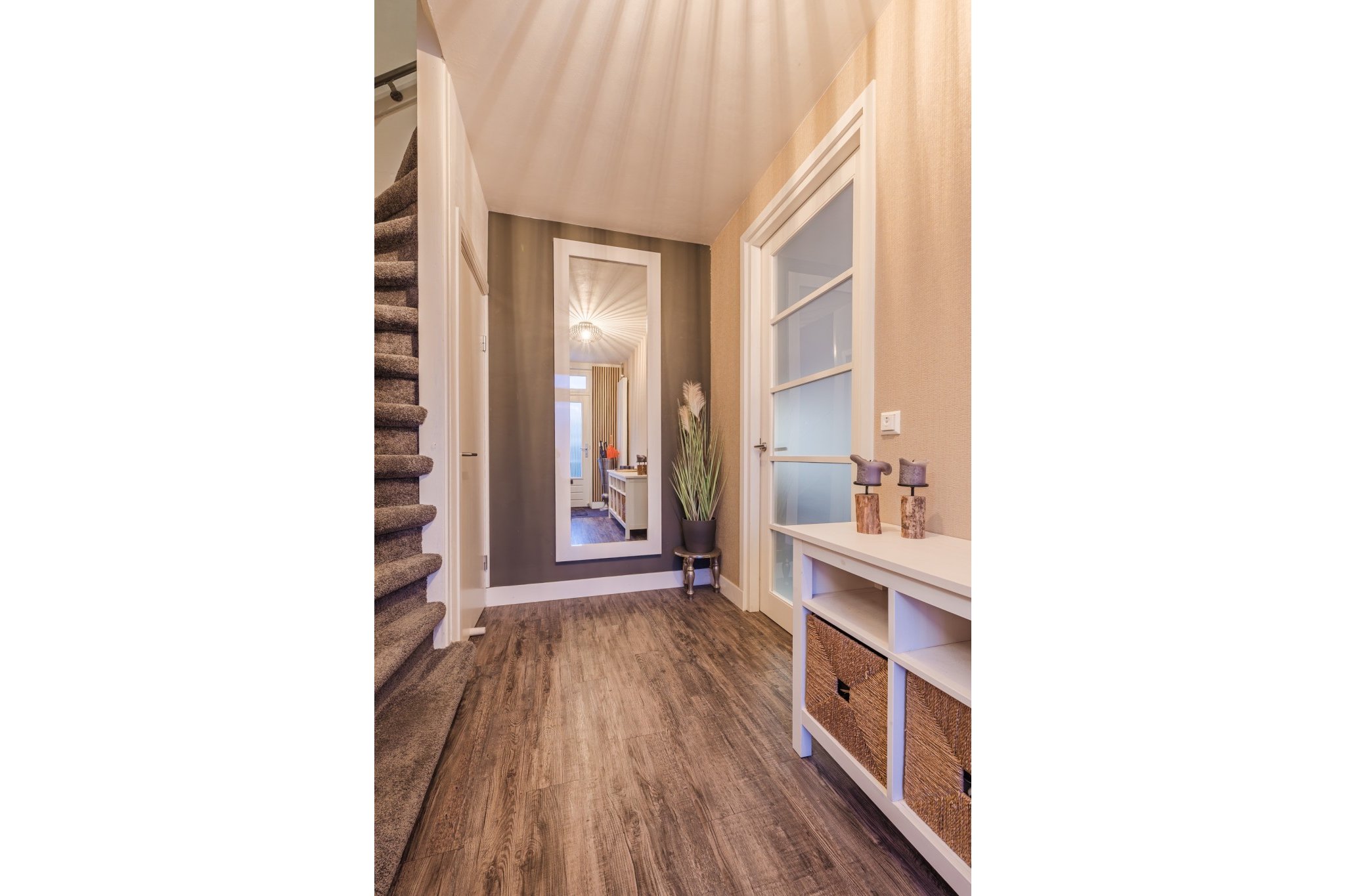 Overloop met vloerbedekking.