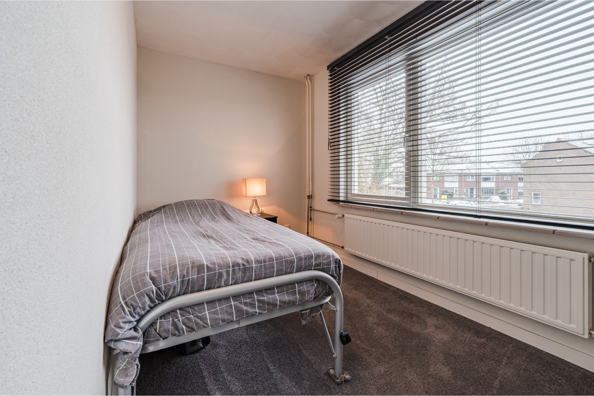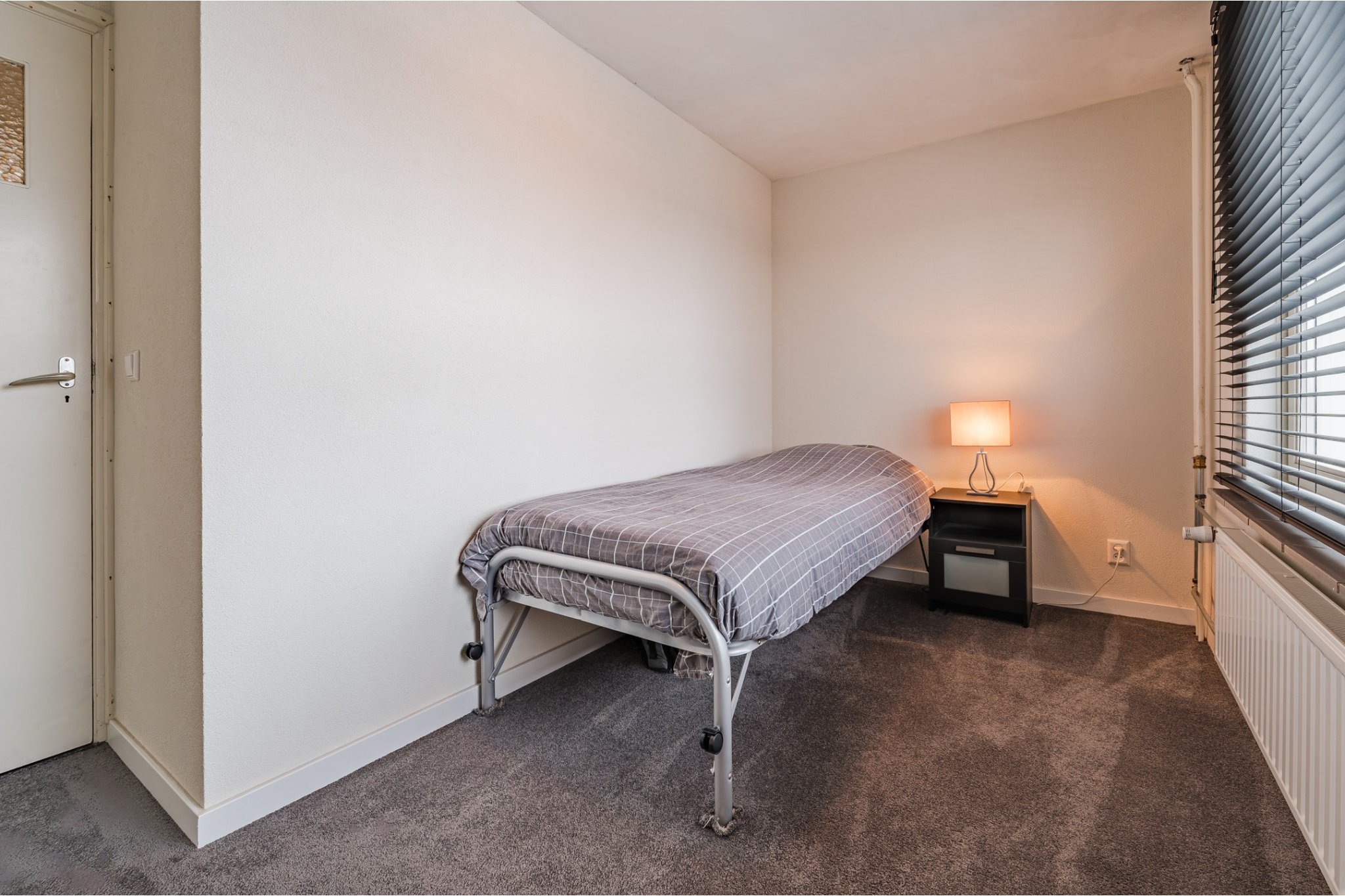 Slaapkamer, ± 7 m², met vloerbedekking.
