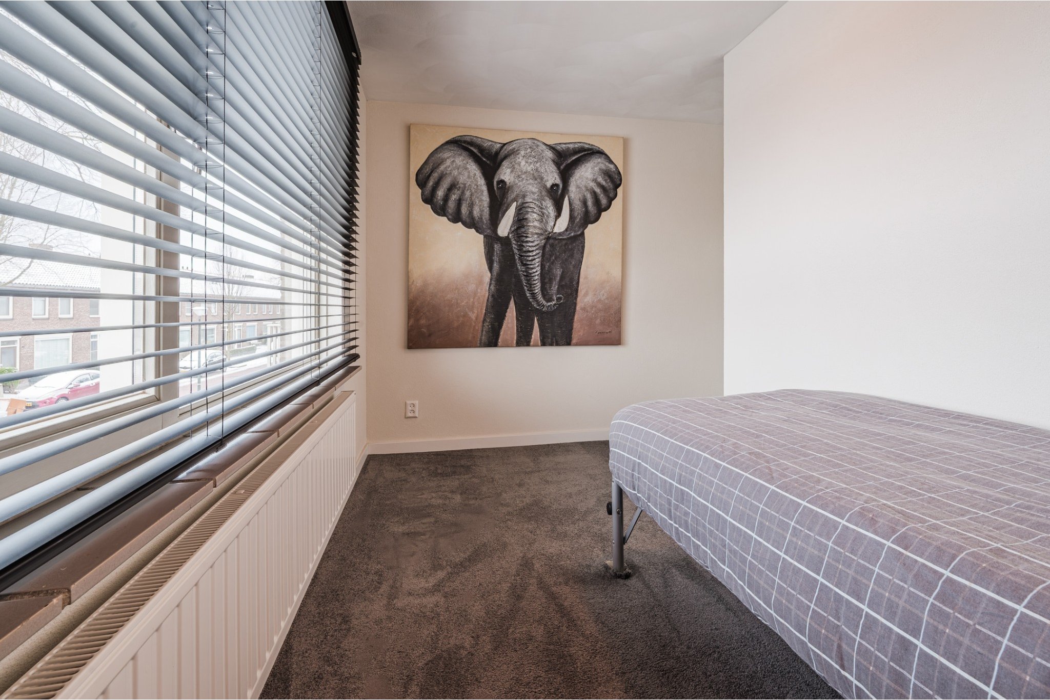 Slaapkamer, ± 8 m², met vloerbedekking.