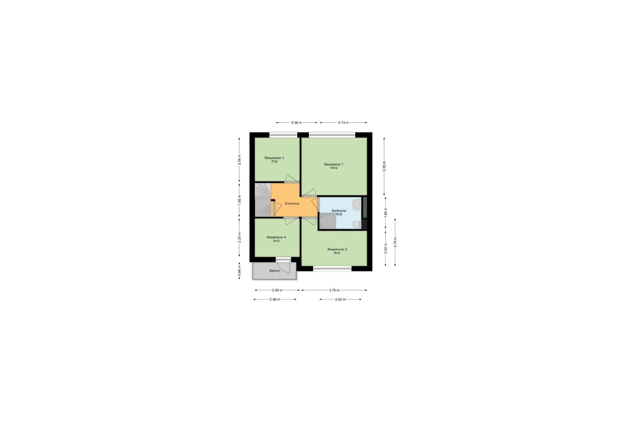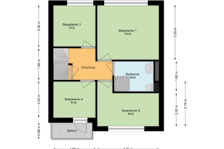 Ruime overloop voorzien van pvc-vloer.