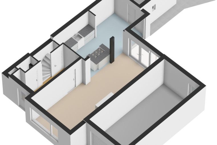 * Krachtstroom voor inductie koken aanwezig onder het kookeiland.