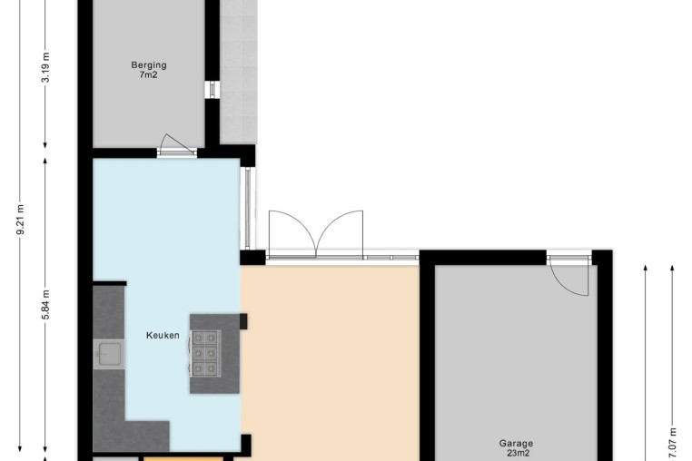 Praktische berging, ± 7 m², bereikbaar vanuit de keuken voorzien van pvc-vloer..