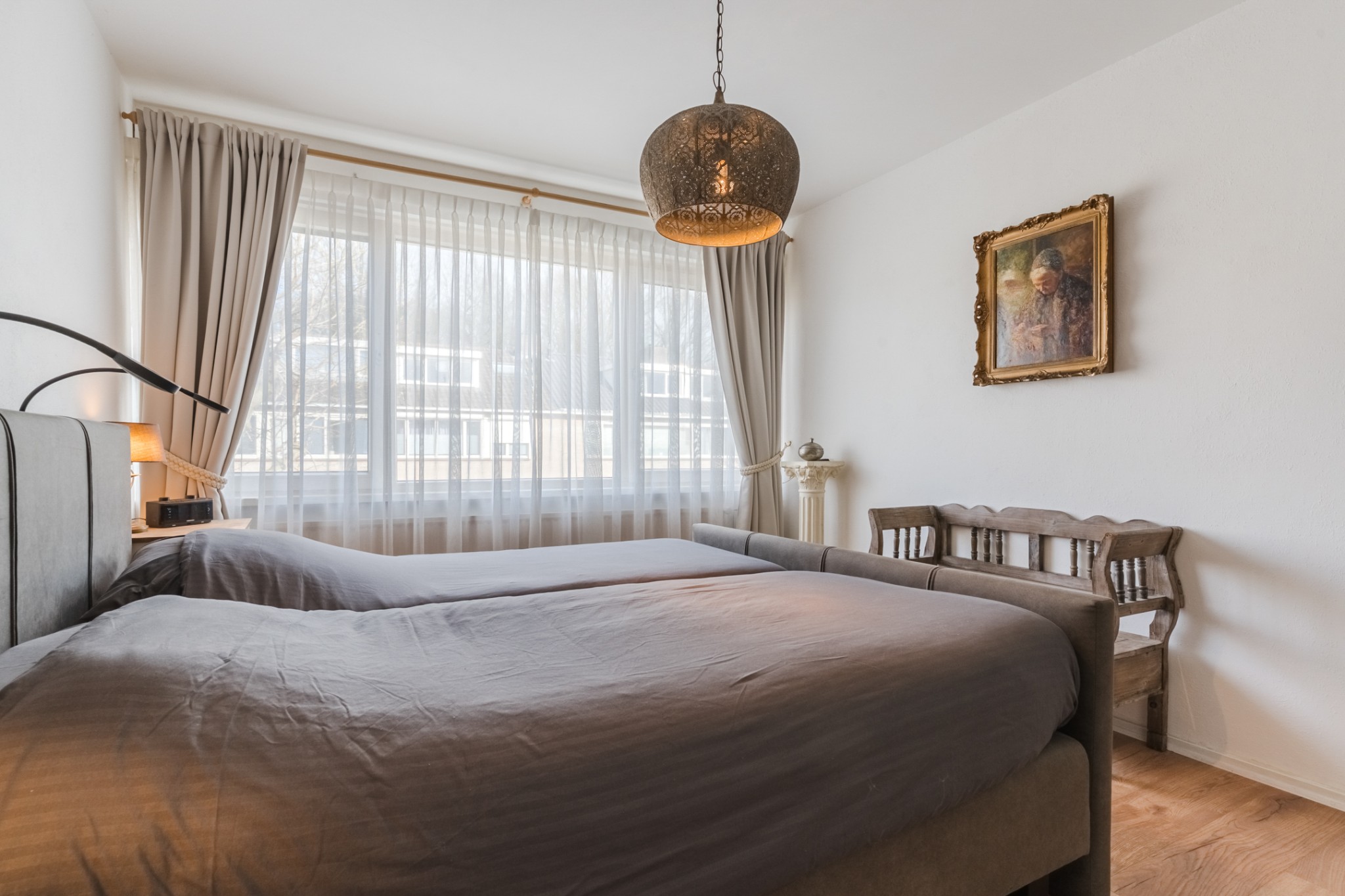 Slaapkamer, ± 14 m², met laminaatvloer, inbouwkast en screens.