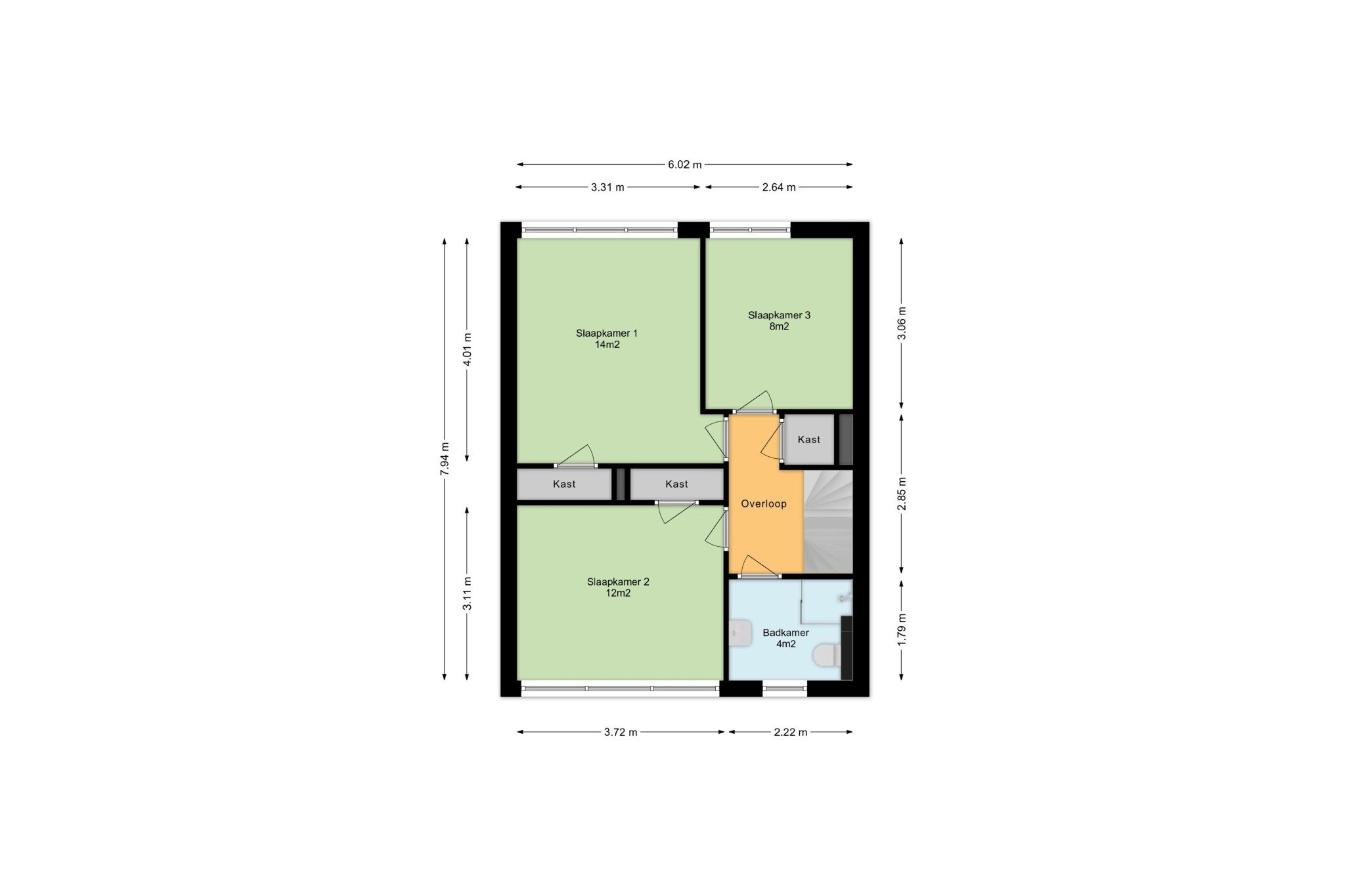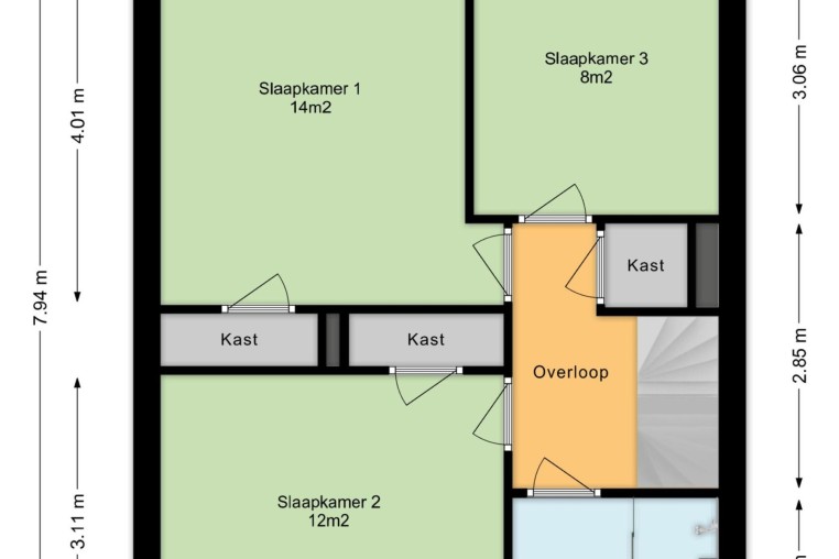 slaapkamer, ± 12 m², met laminaatvloer en inbouwkast.