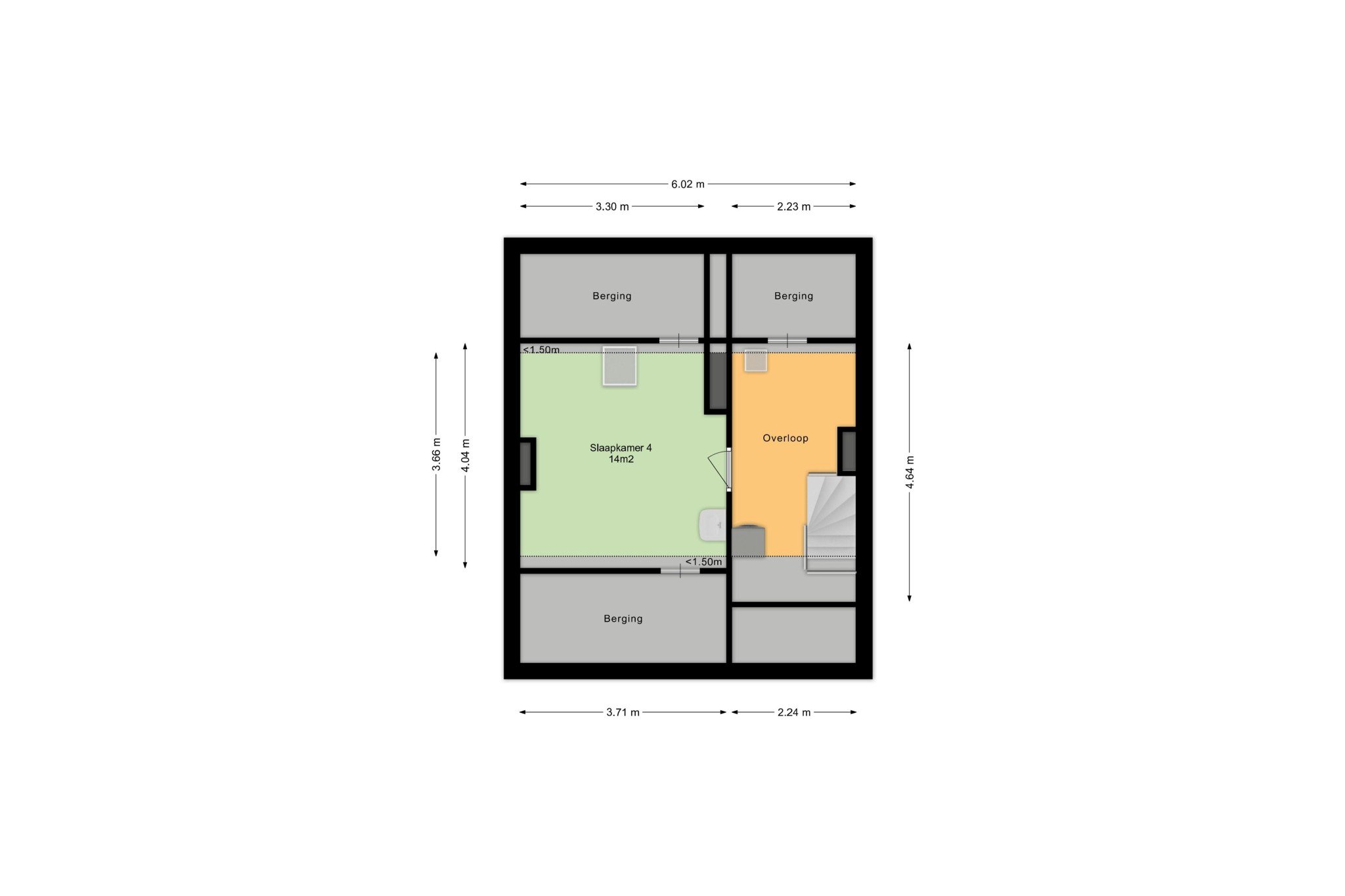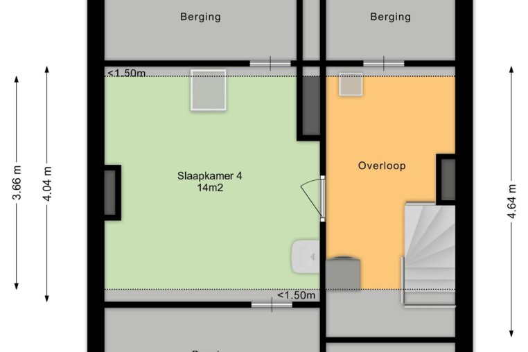 Bereikbaar middels vaste trap.