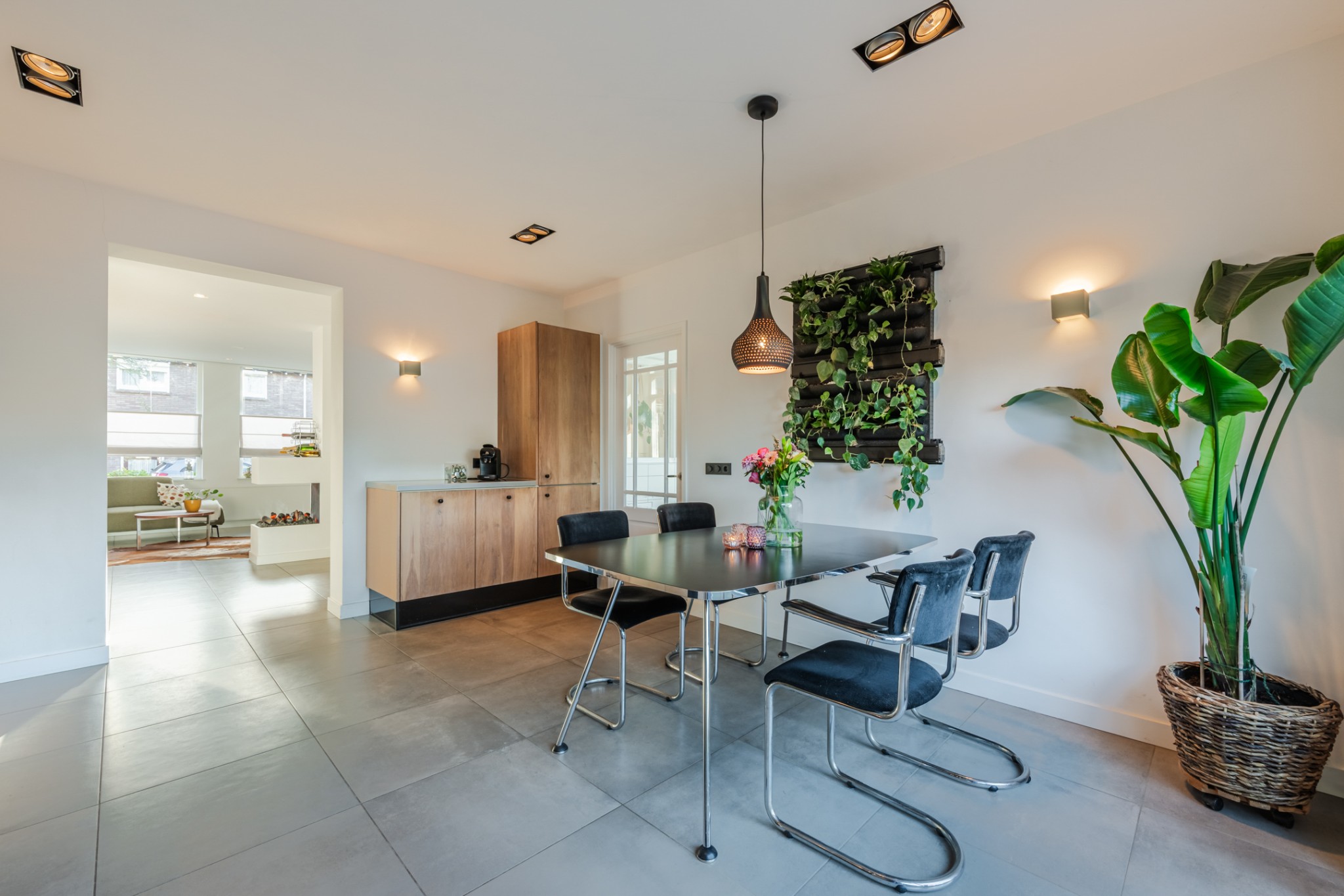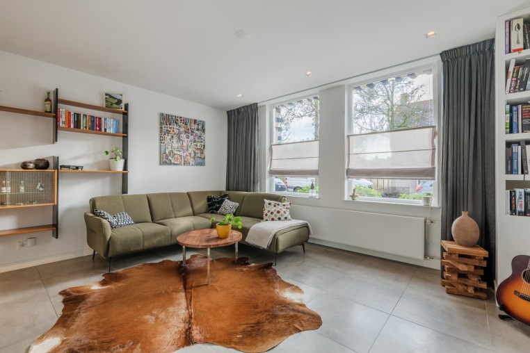 Ruime woonkamer, ± 34 m², voorzien van tegelvloer met ...