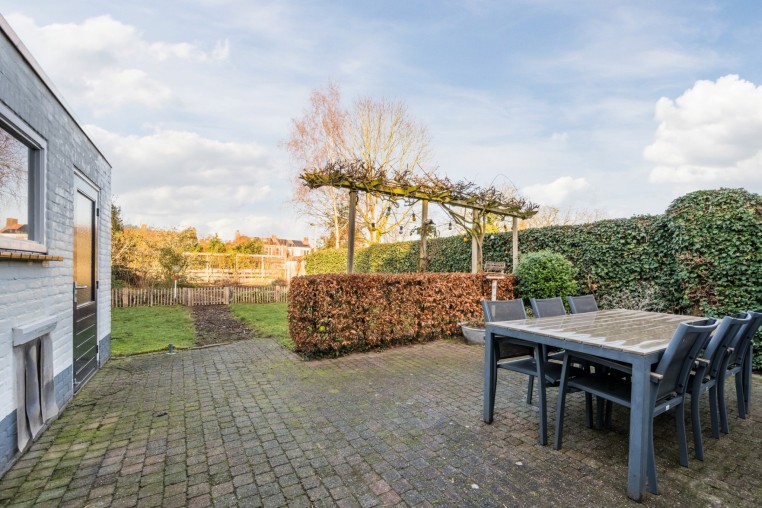VERRASSEND RUIME, MODERNE, OVER DE VOLLE BREEDTE UITGEBOUWDE HOEKWONING MET GARAGE, ZONNEPANELEN EN ACHTERTUIN MET VEEL PRIVACY OP EEN ROYAAL PERCEEL (± 399 M²).